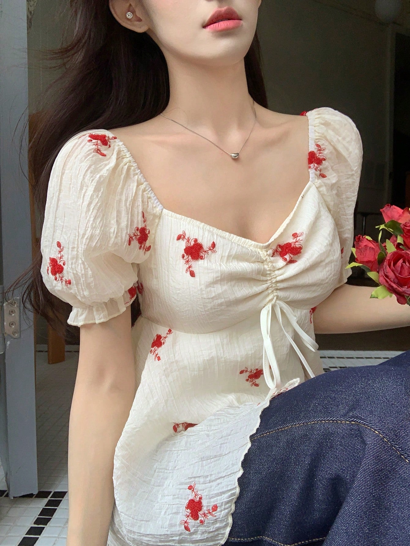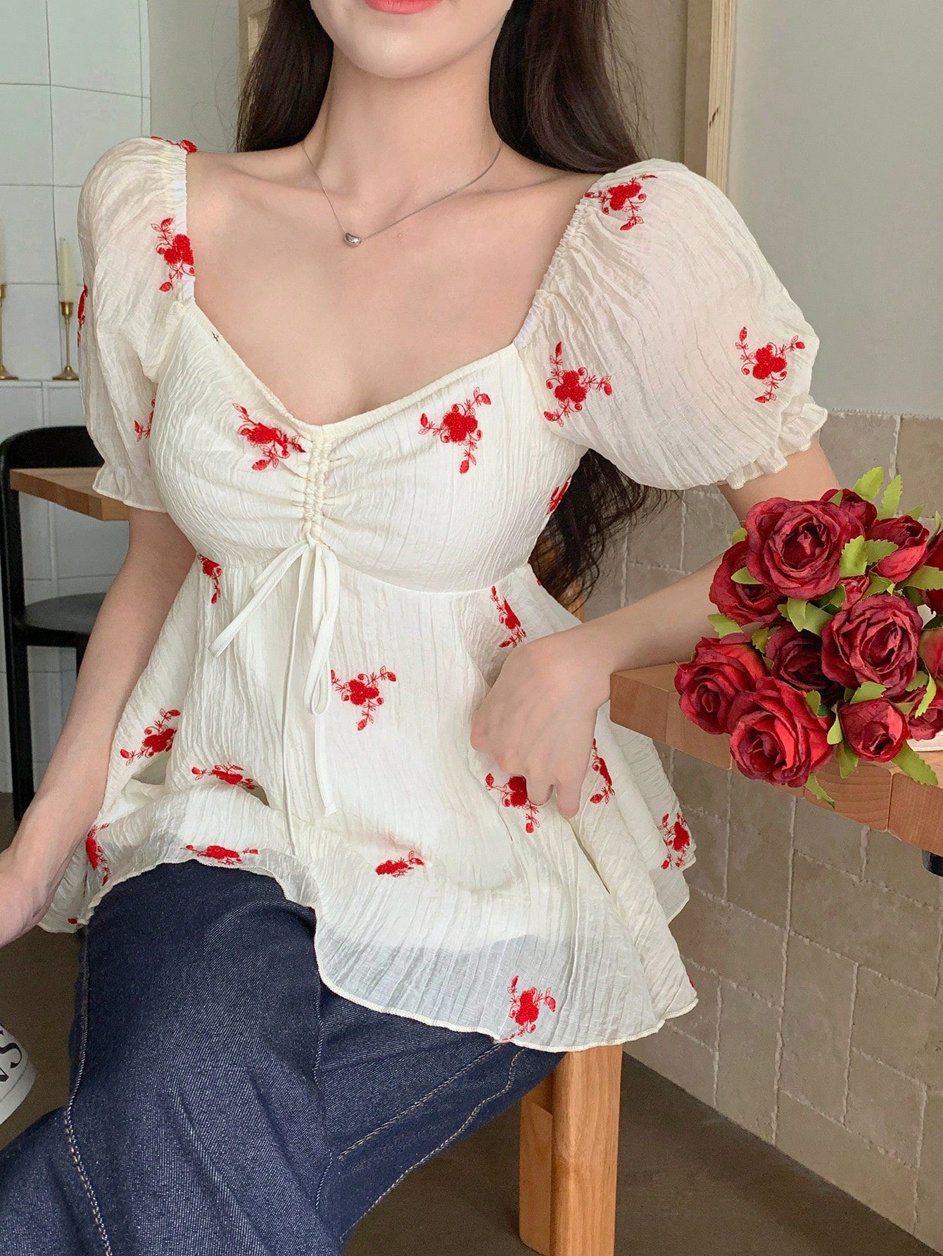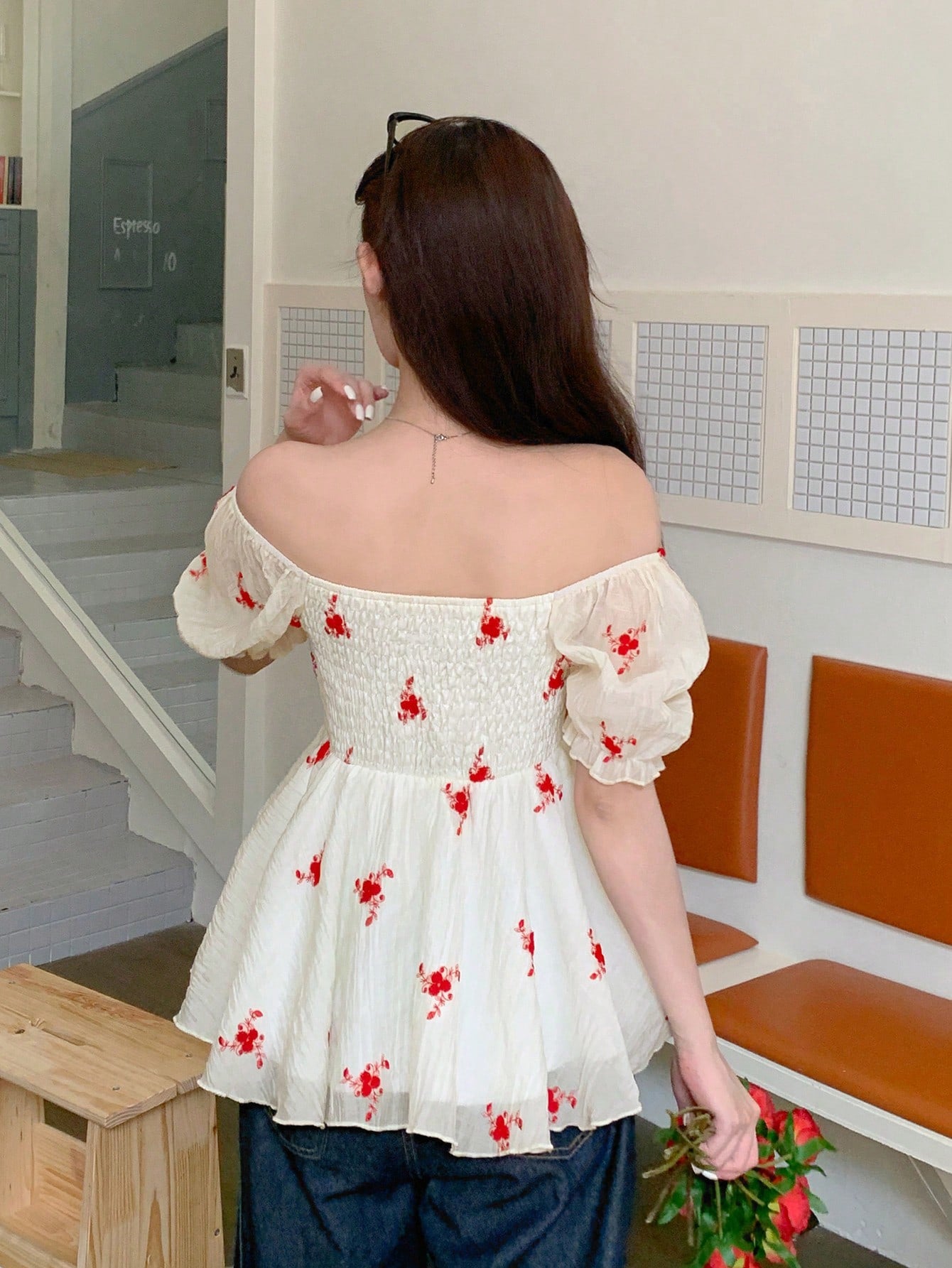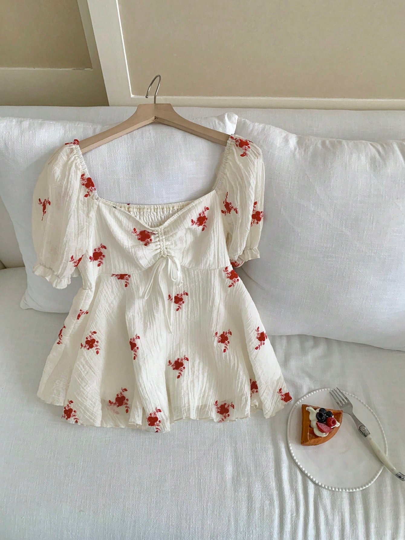 بلوزة نسائية من DAZY بكتف واحد مطبوعة بالورود مع رباط، بلوزة بيبي دول
