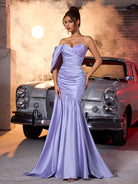 فستان Glamrae الأنيق والرومانسي والأنيق من الساتان والترتر بدون حمالات، مناسب
