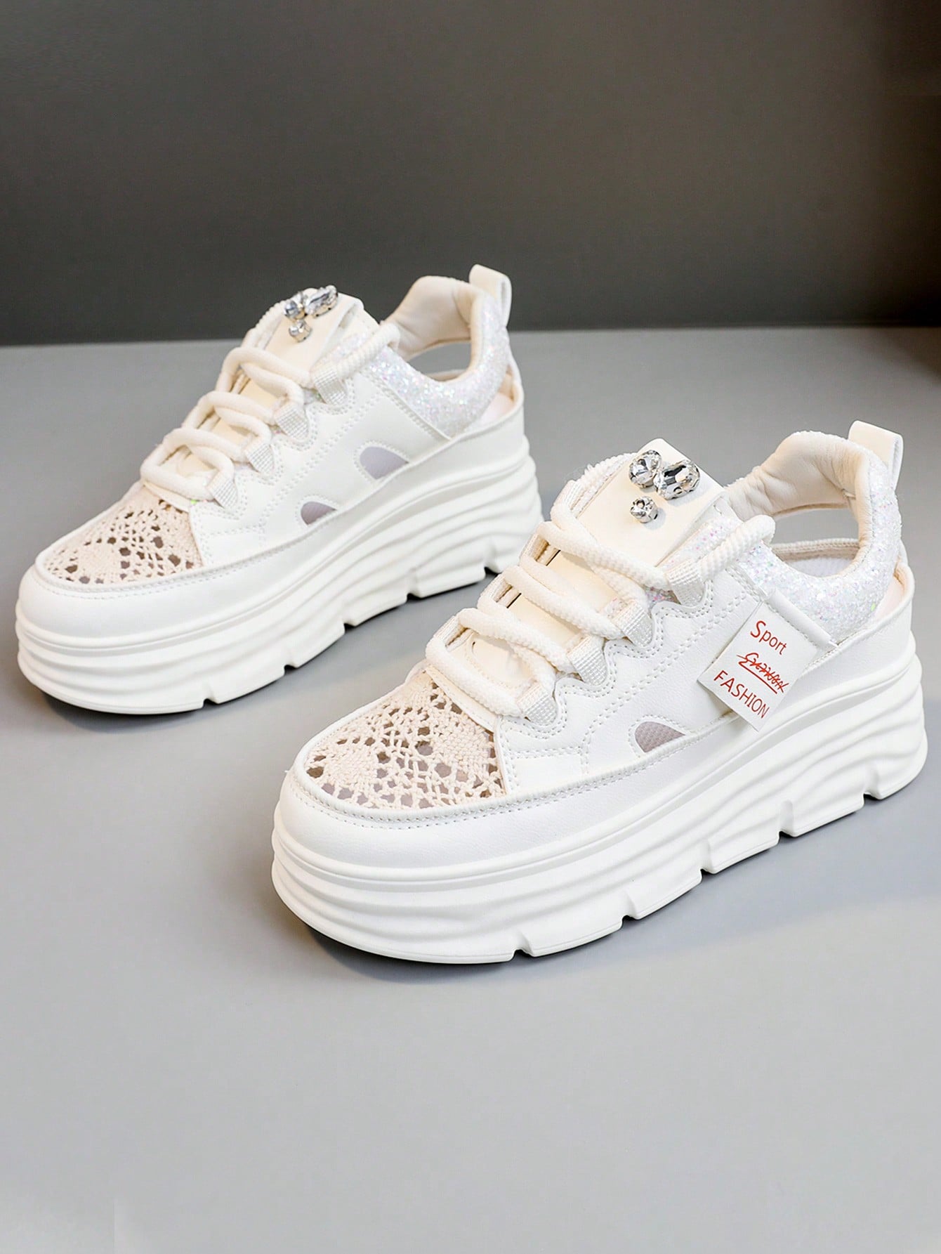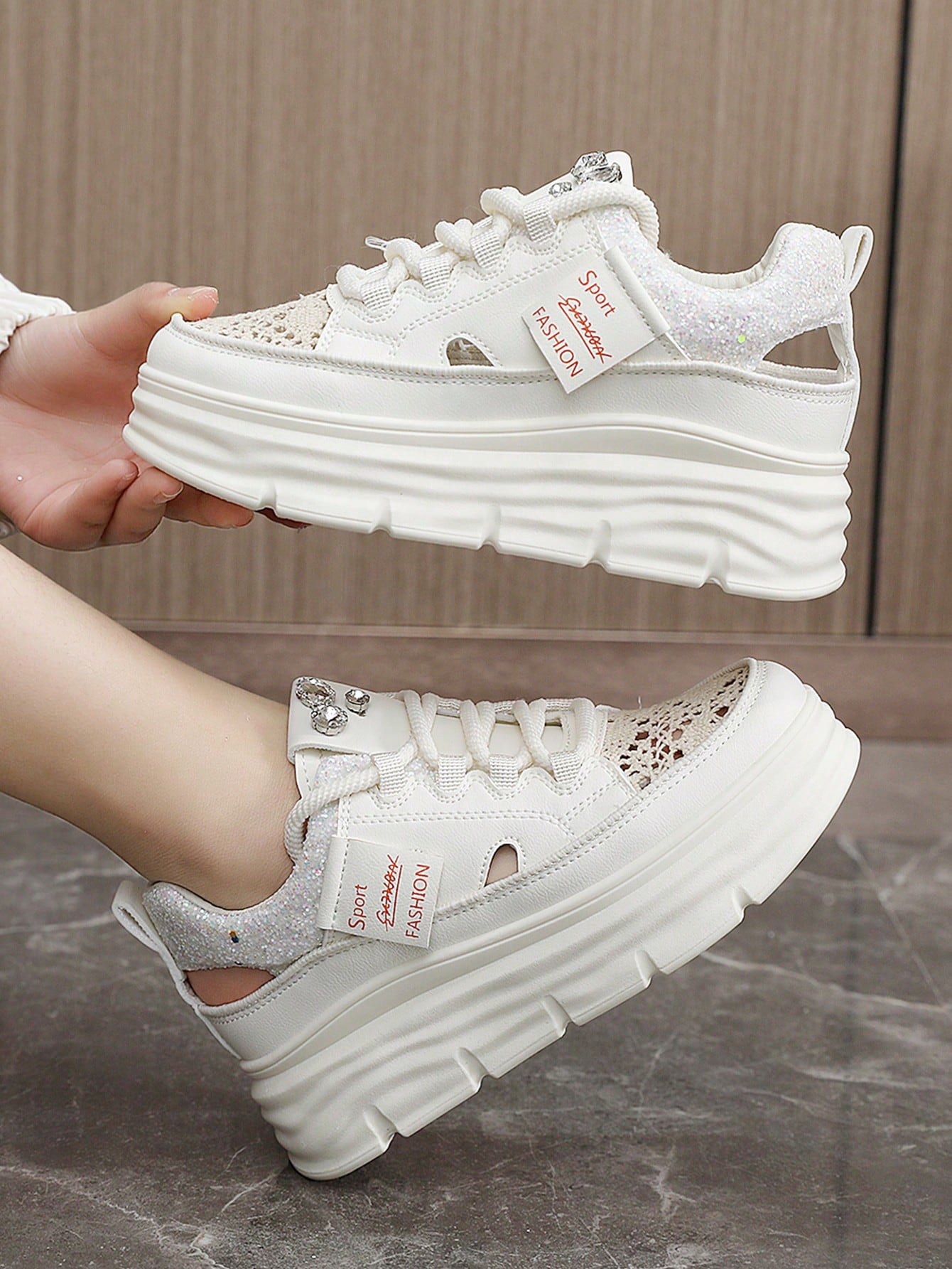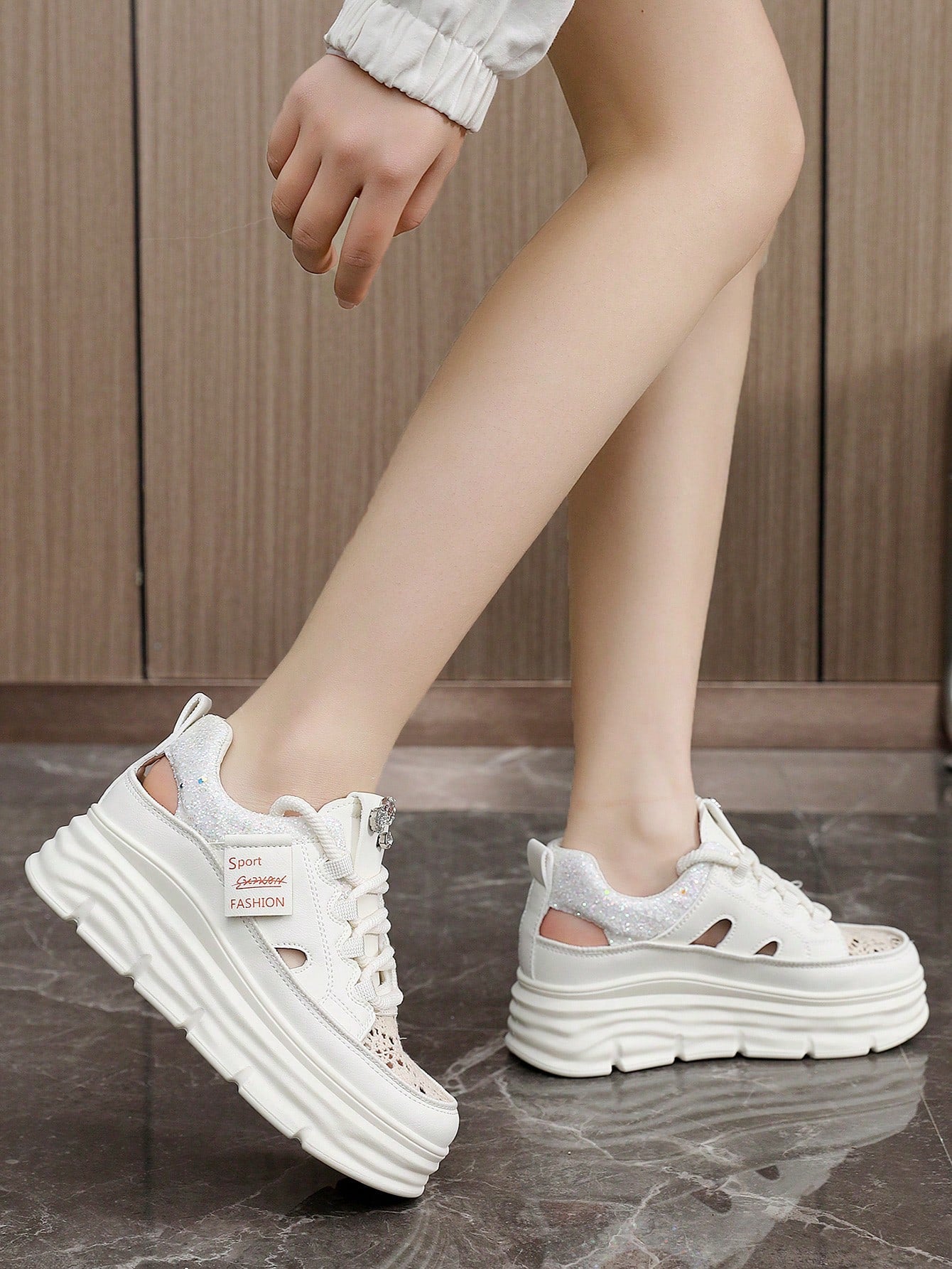 حذاء نسائي صيفي جديد لعام 2024، حذاء بكعب إسفيني، حذاء رياضي كاجوال بنعل سميك، حذاء مجوف قابل للتنفس
