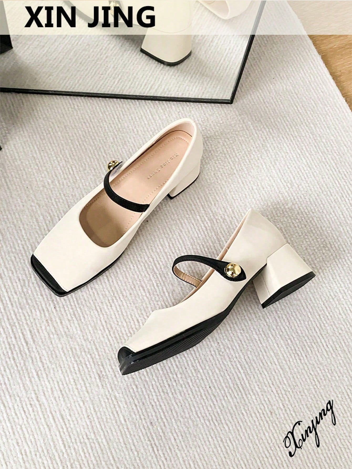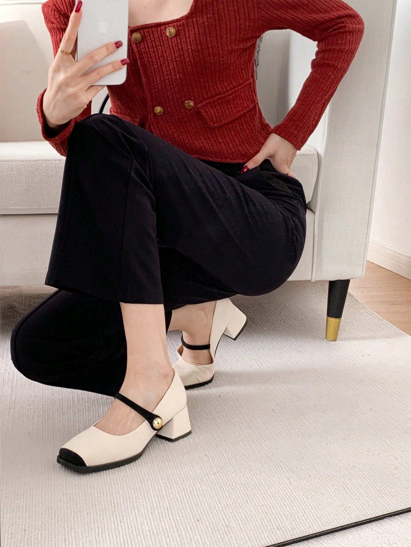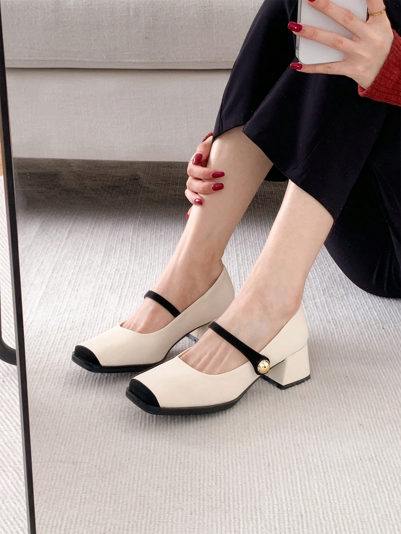 women New Fashion Women's Chunky Heel Pumps With Color Block Design