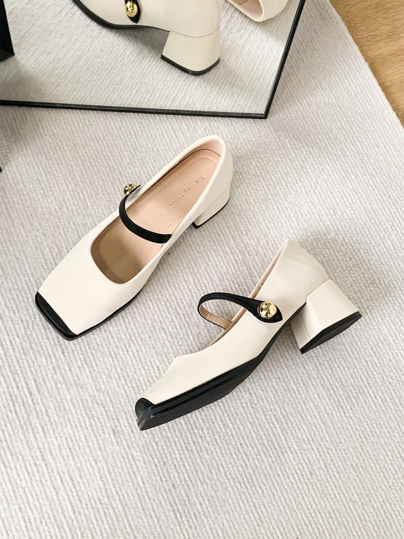حذاء نسائي بكعب سميك بتصميم كتل الألوان، موضة جديدة