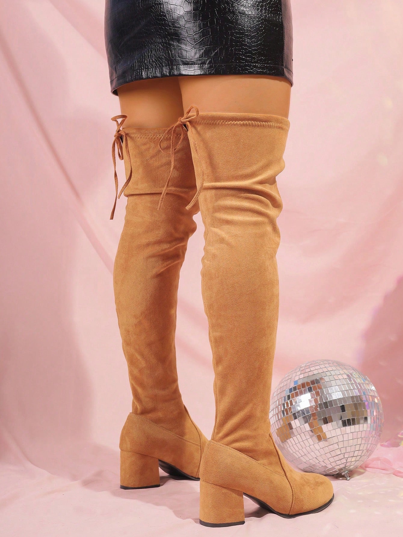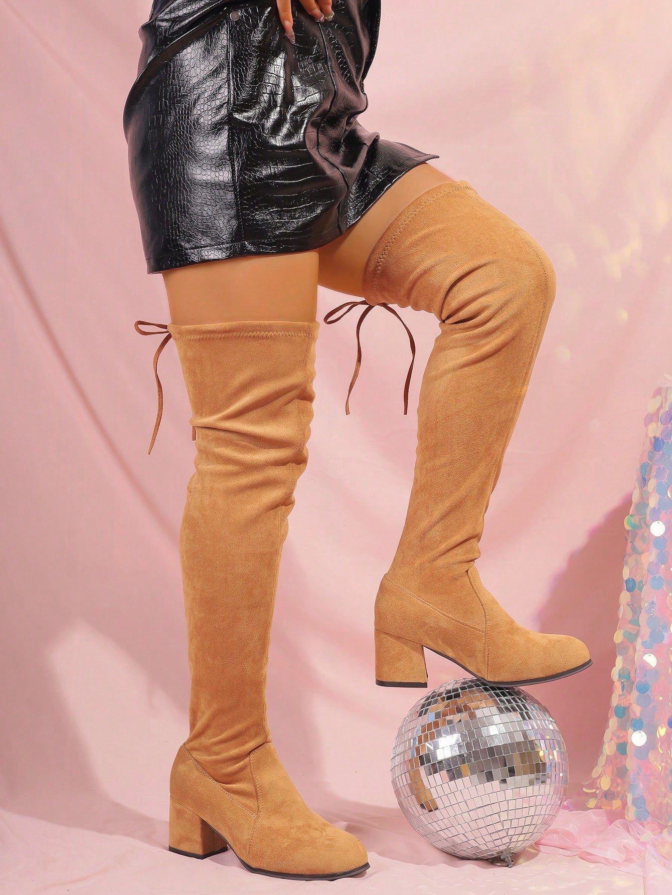 حذاء عريض يصل إلى الركبة، بكعب سميك، برباط، مضاد للانزلاق