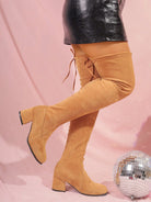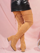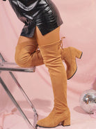 Wide-Width Over-The-Knee Stretch Boots, Thick Heel, Lace-Up, Anti-Slip