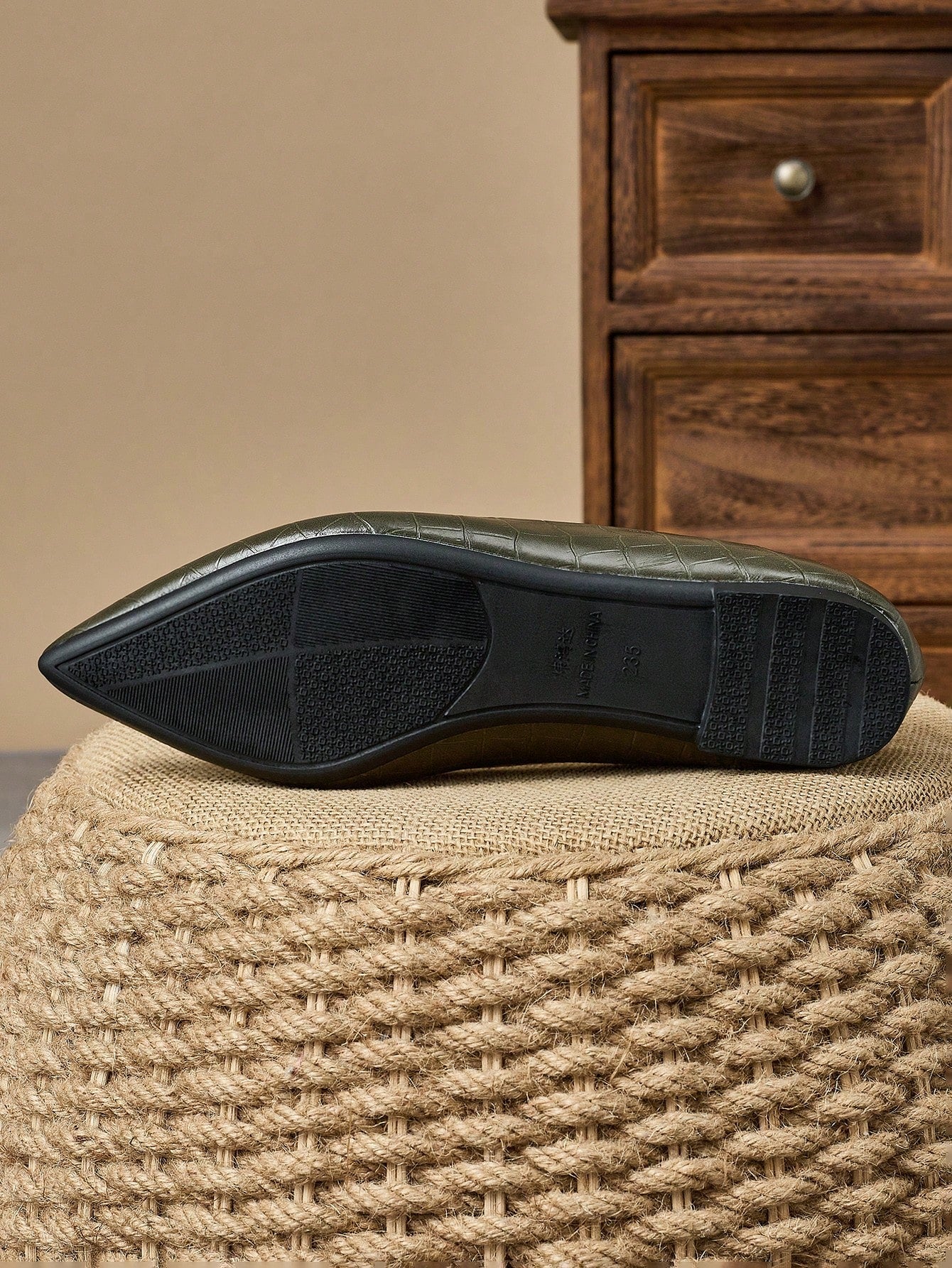Women's Black Snake Print,Red Outside, Pink Stone Print, Yellow Pointed Toe Flat Shoes, Suitable For