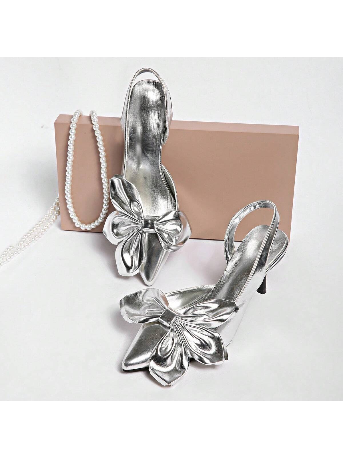 حذاء نسائي أنيق للحفلات مزين بأحجار الراين على شكل فراشة بكعب عالٍ ومقدمة مدببة