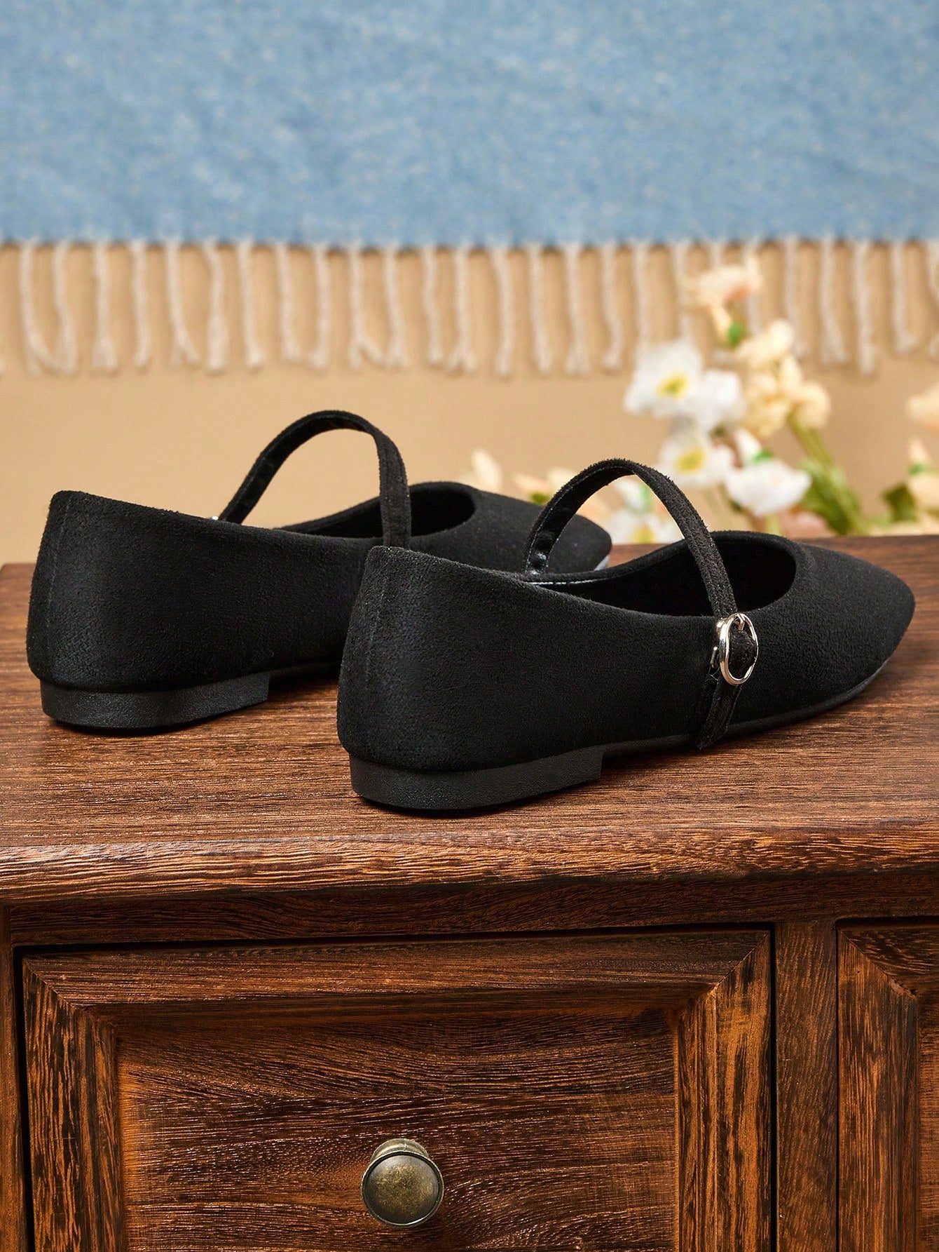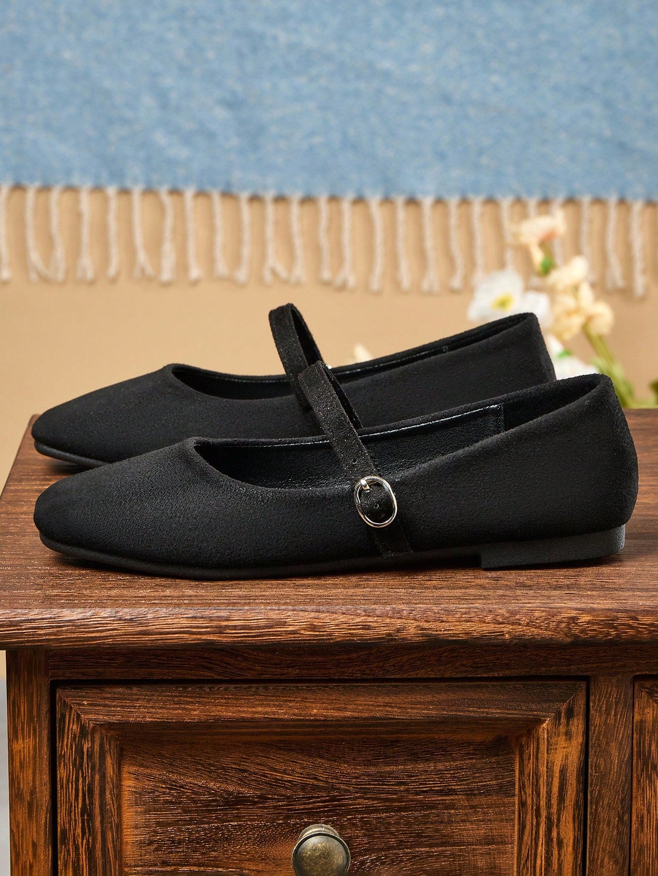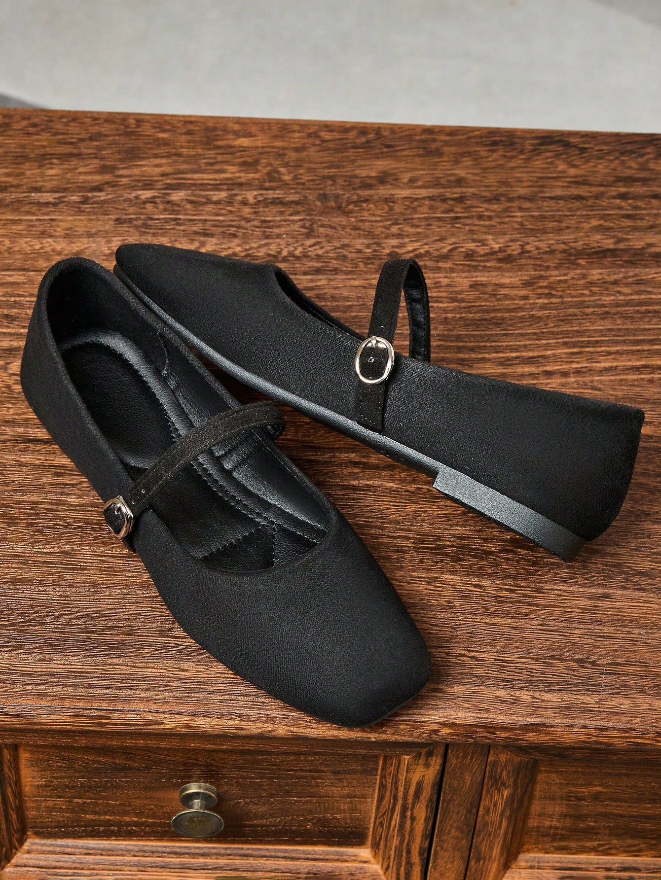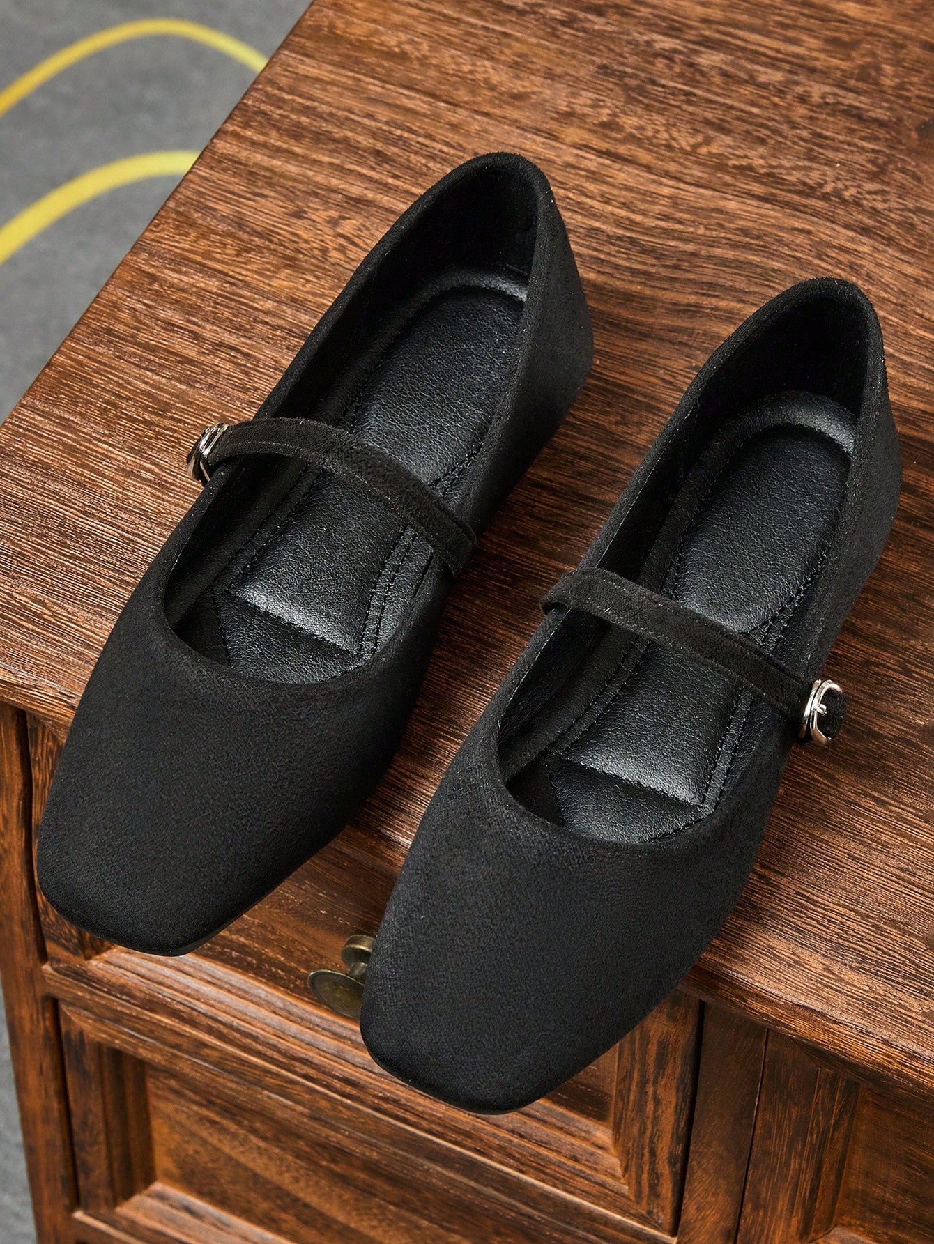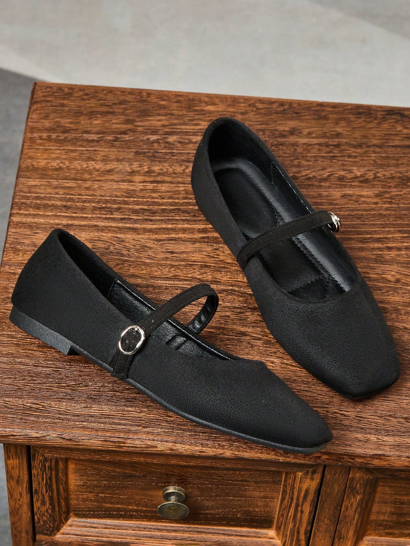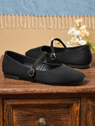 حذاء نسائي أسود سهل الارتداء بمقدمة مربعة، حذاء مسطح متعدد الاستخدامات للمكتب، مناسب للارتداء في الهواء الطلق، للربيع والخريف.