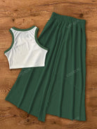 2pcs/Set Women Rib-Knit Sleeveless Color Block T-Shirt And Mini Skirt