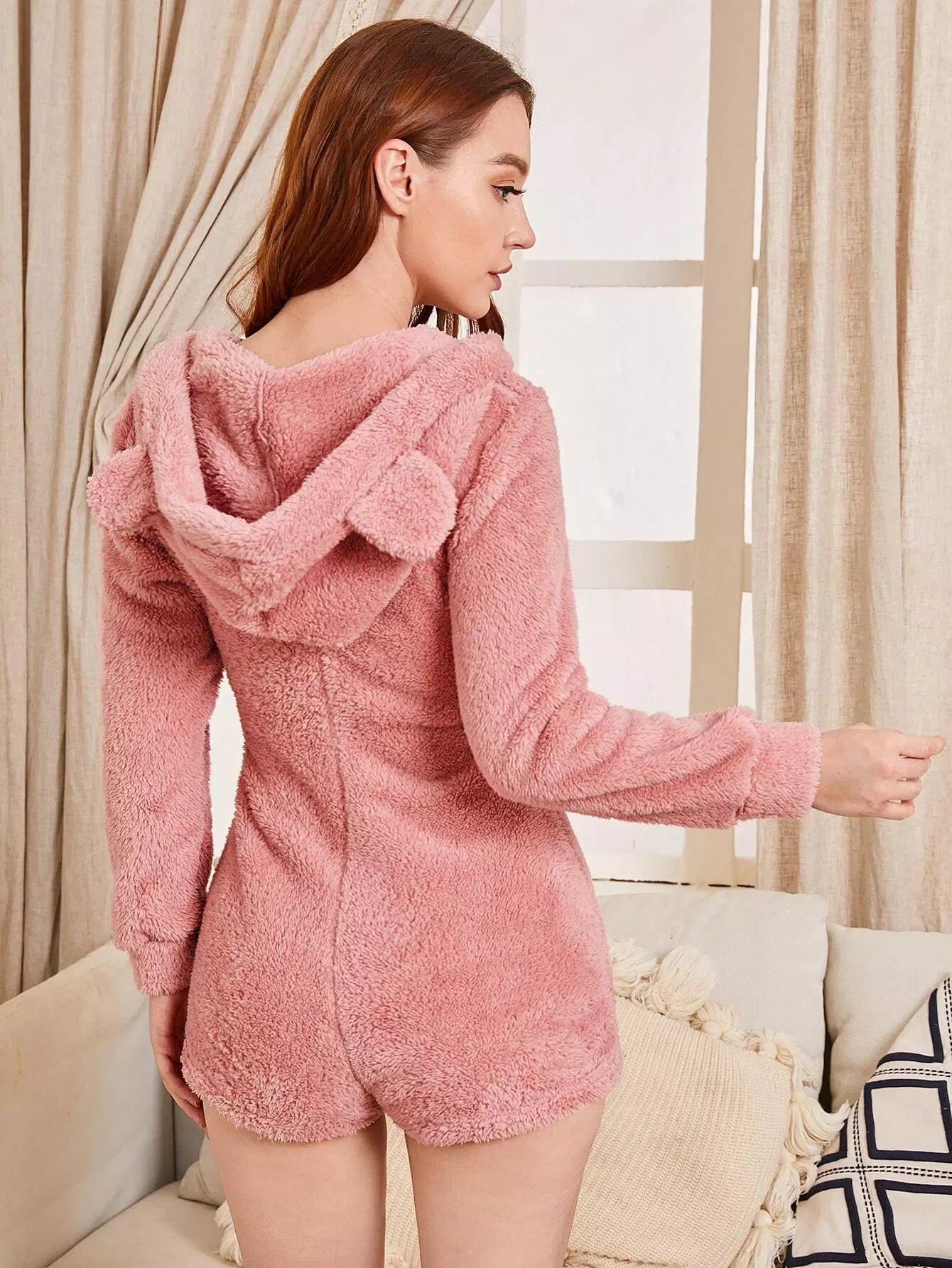 أذنين ثلاثي الأبعاد بتصميم نصف سحاب أونيزي مخملي بسحاب