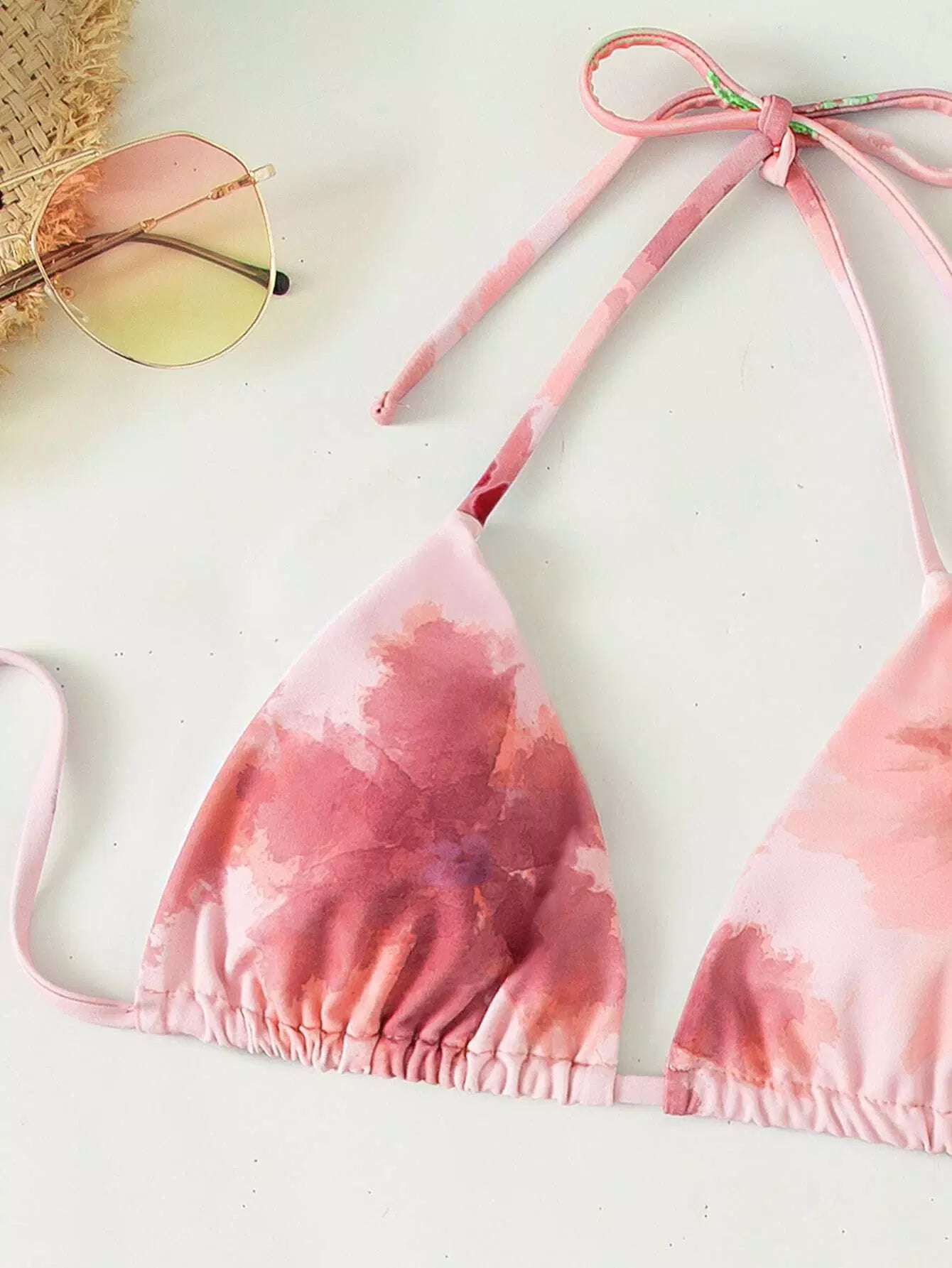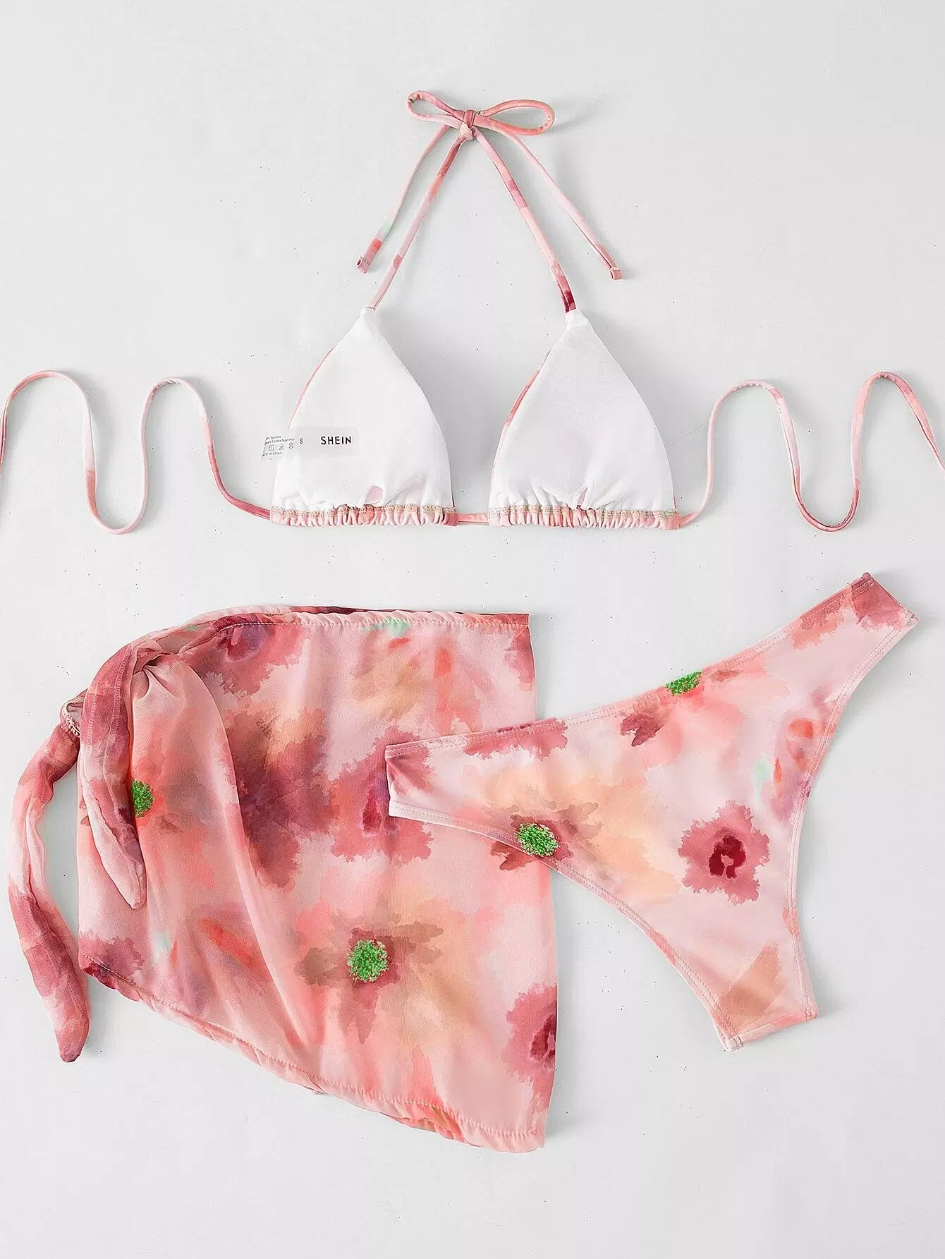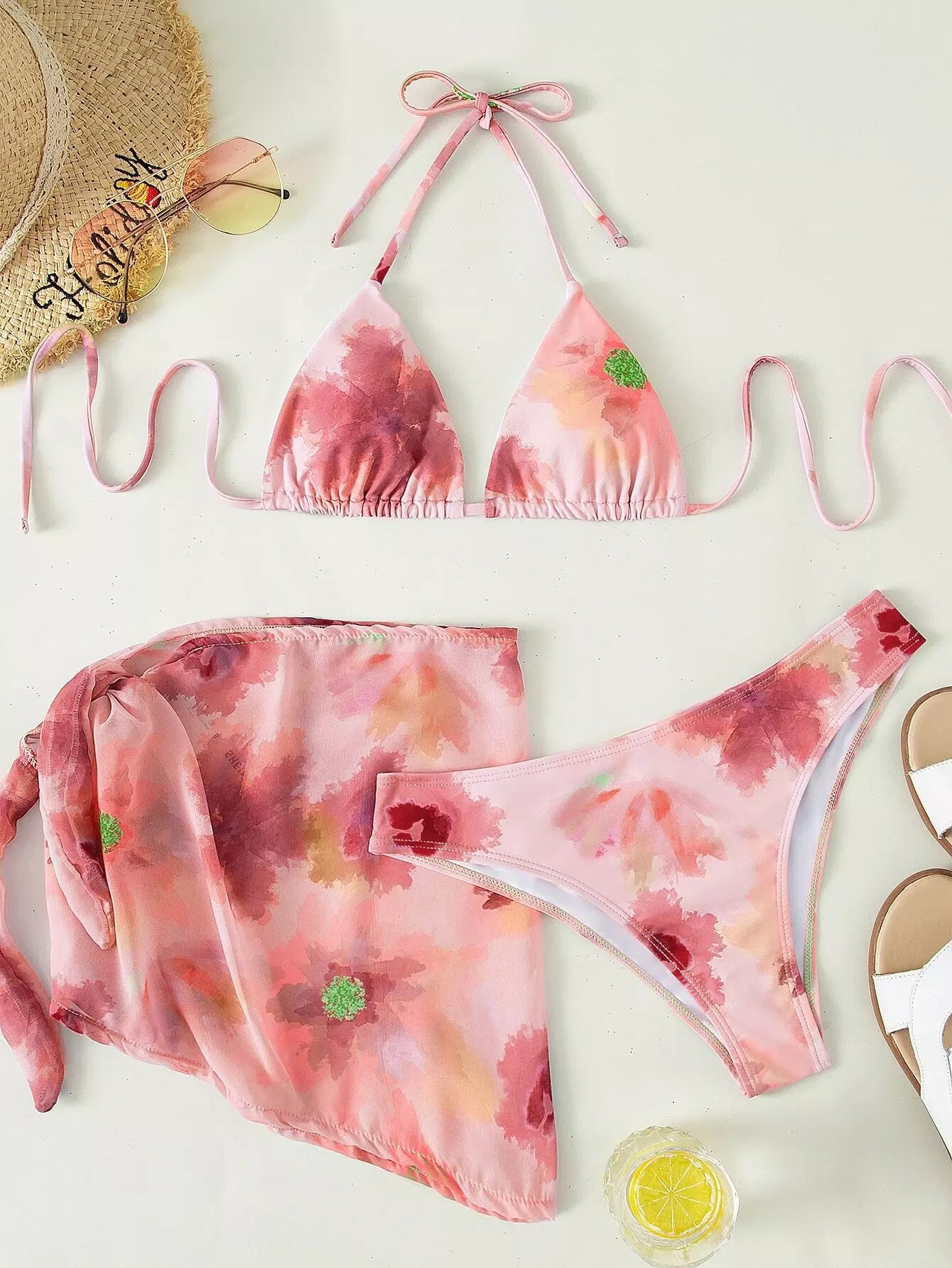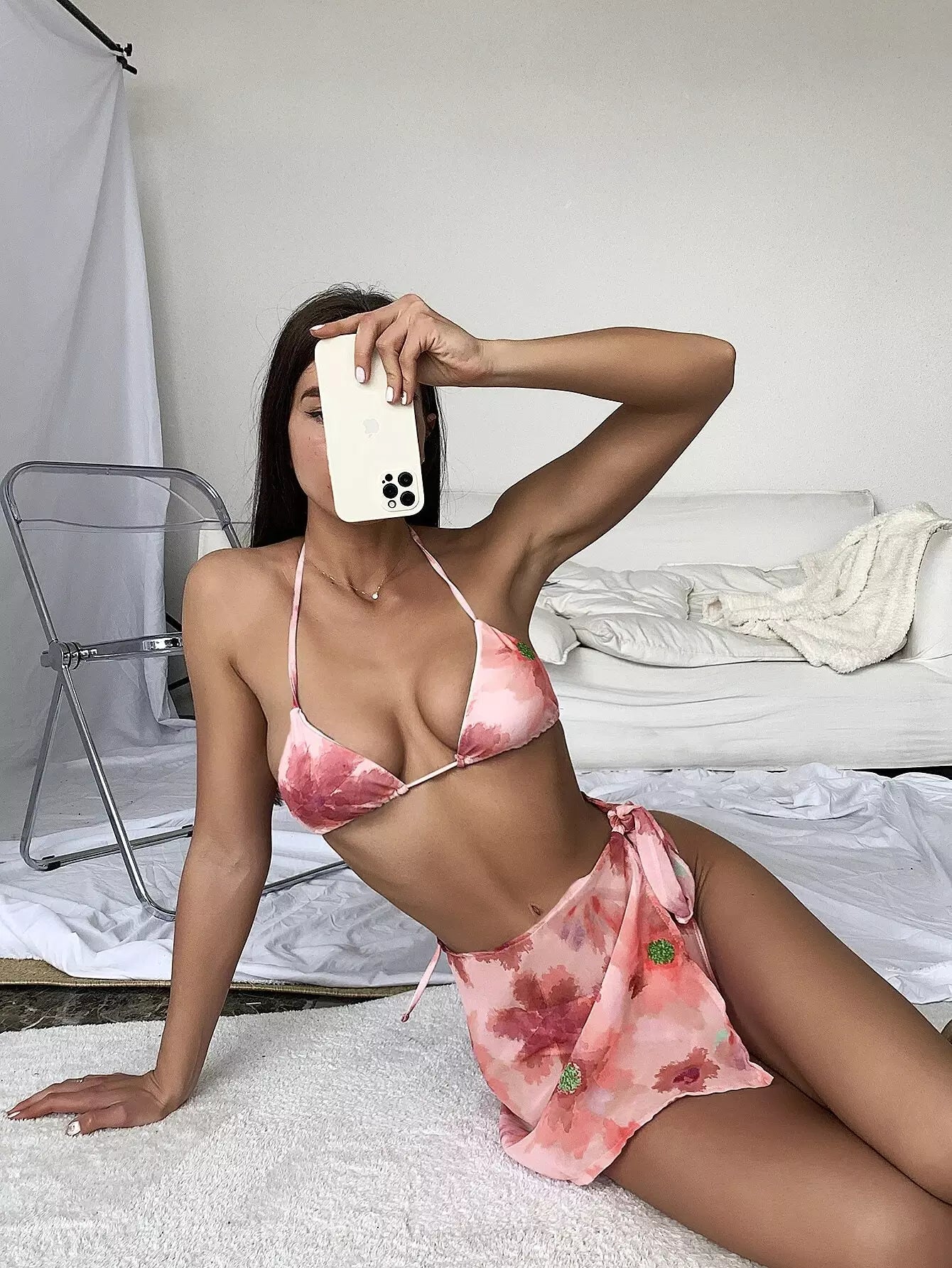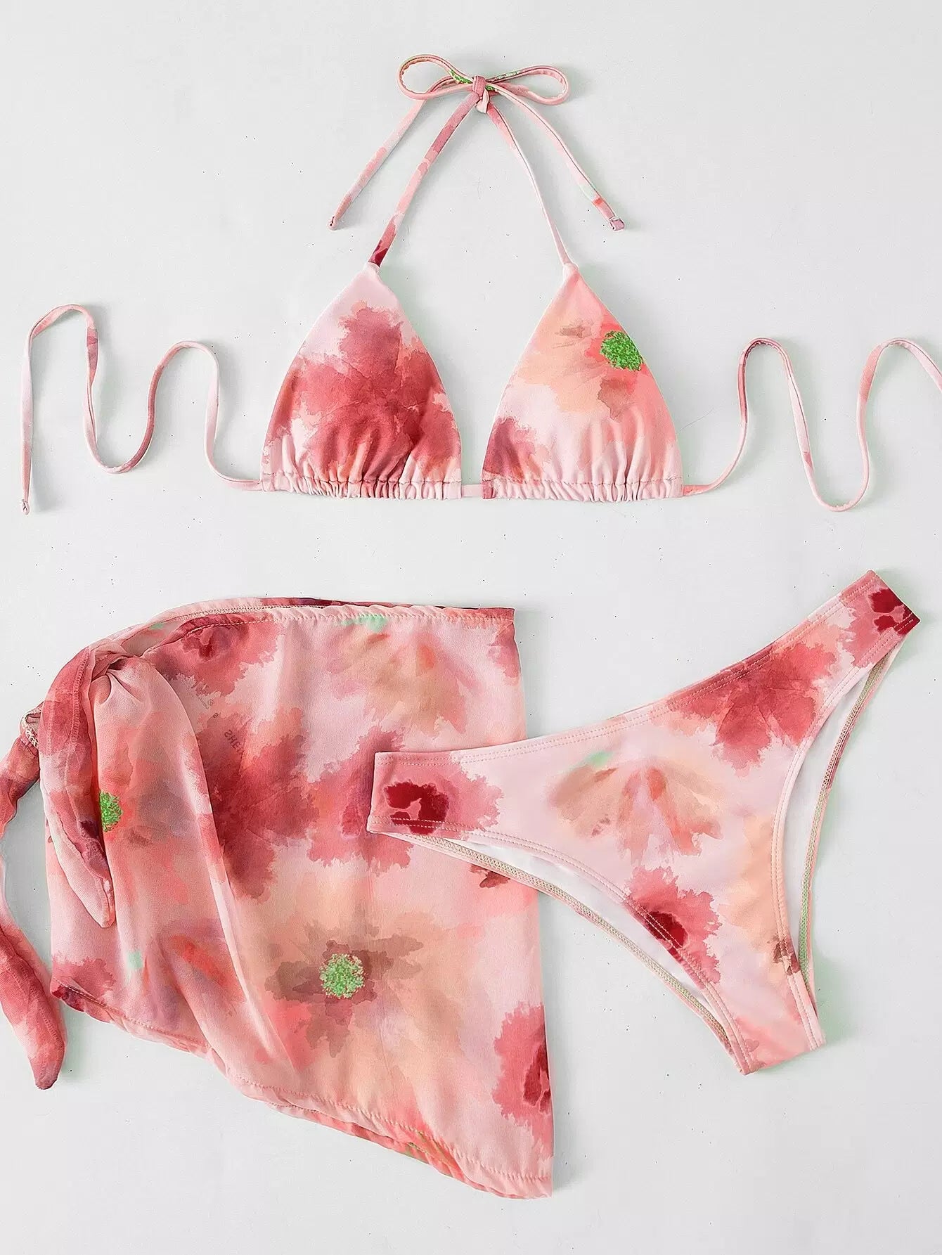 3 عبوات ملابس سباحة بيكيني مثلث ملون مائي وتنورة شاطئية