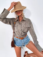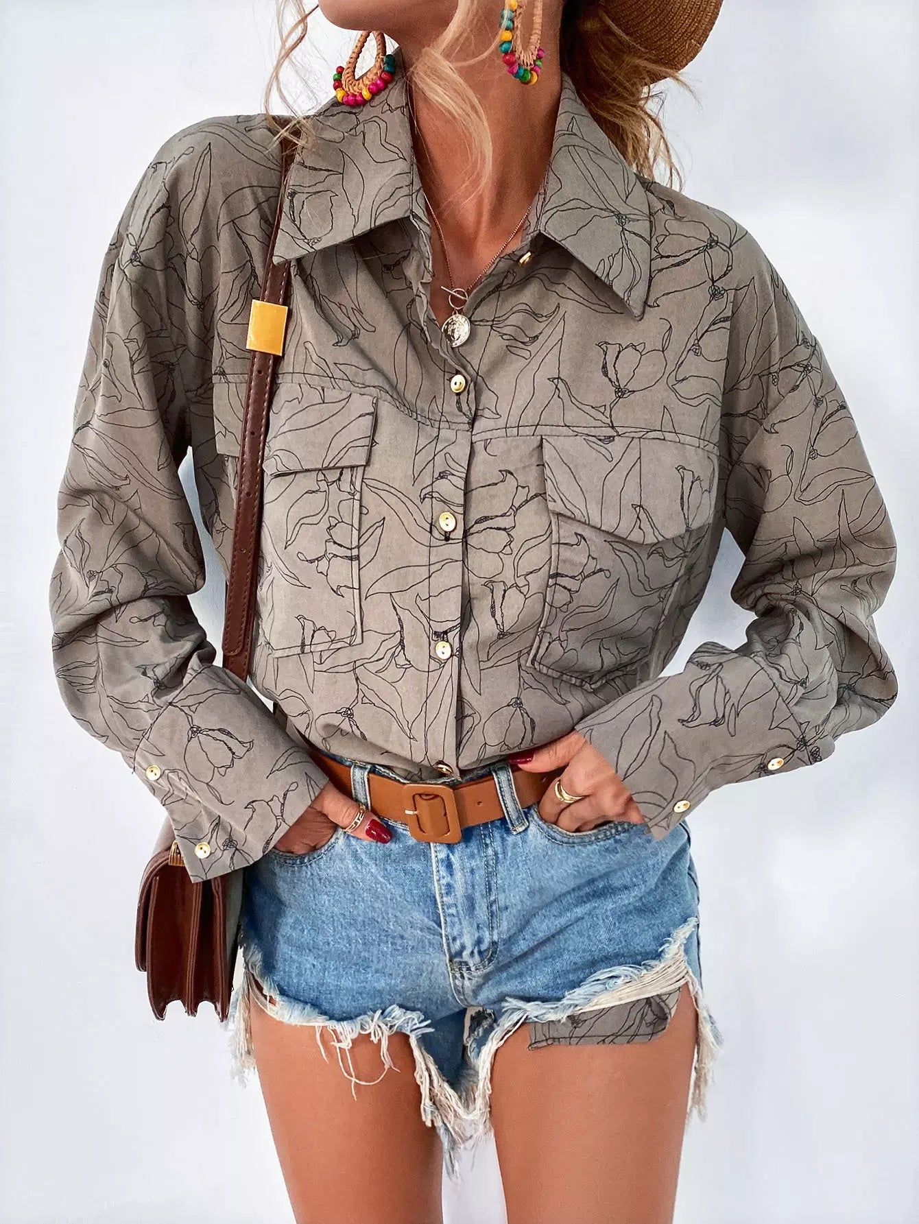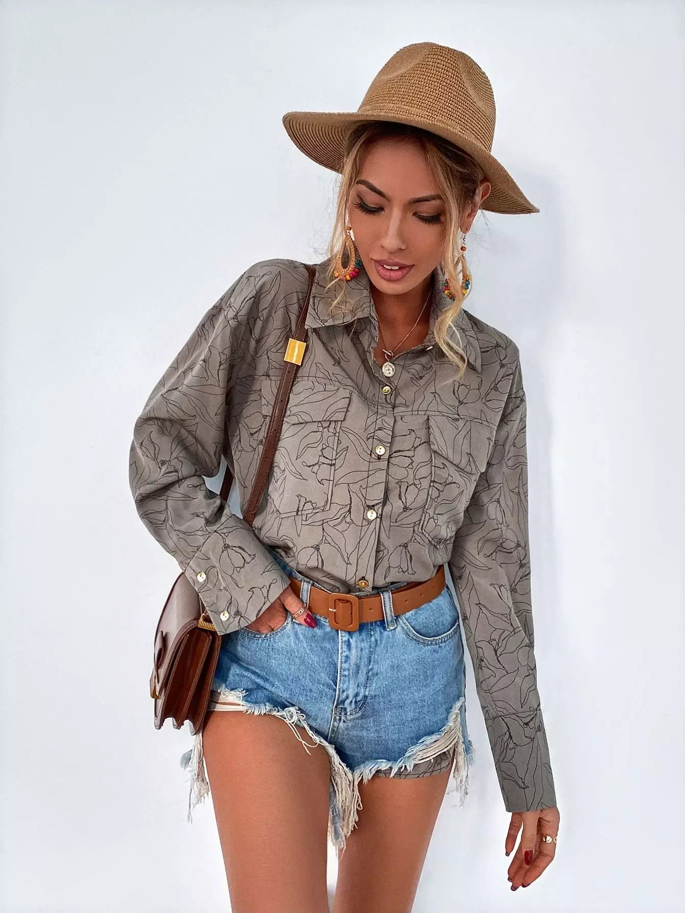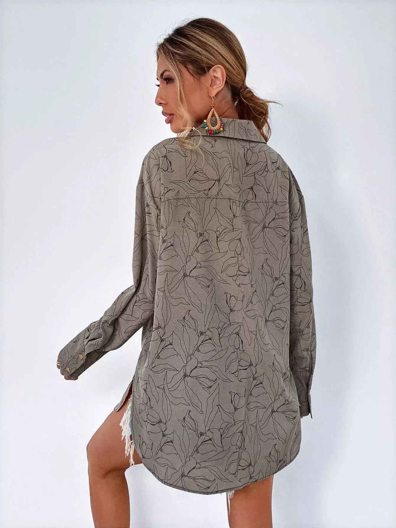 بلوزة تجريدية زهرية بغطاء زهري بفتحة جيب منحنية الحاشية