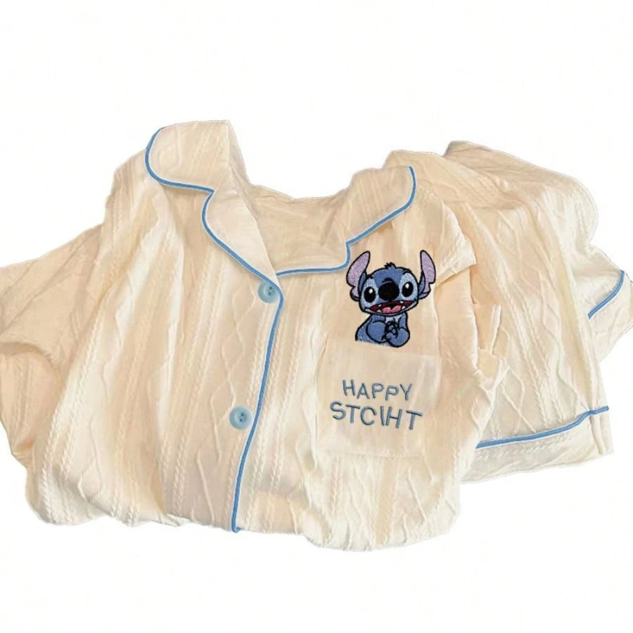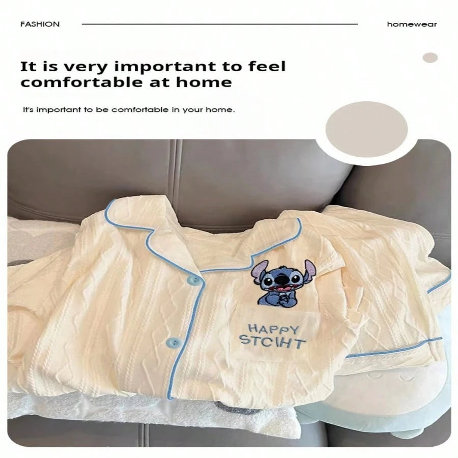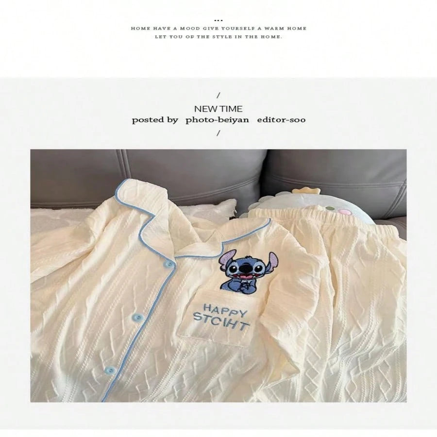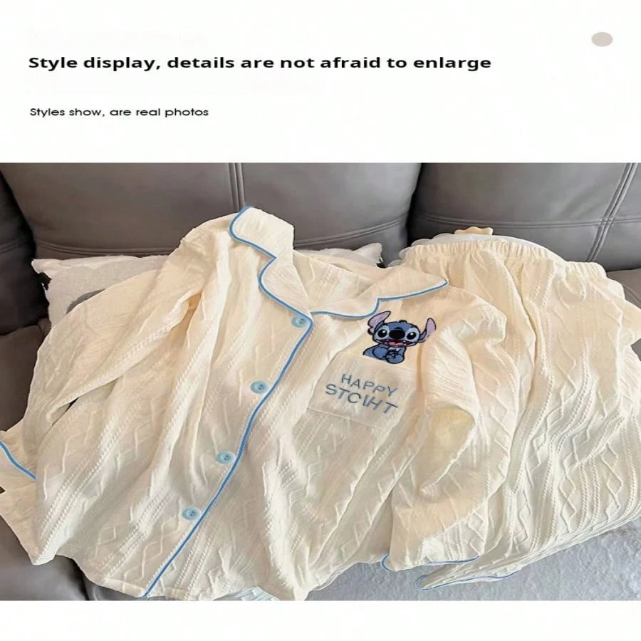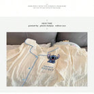 Adult Elegant Woven Polyester Pajamas - Four Seasons Off Shoulder Flower And Color Block Design, Soft
