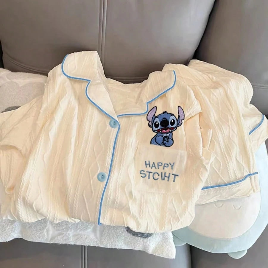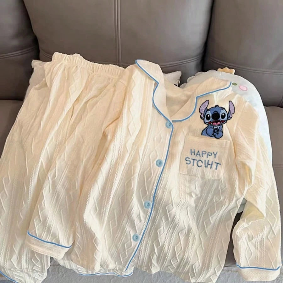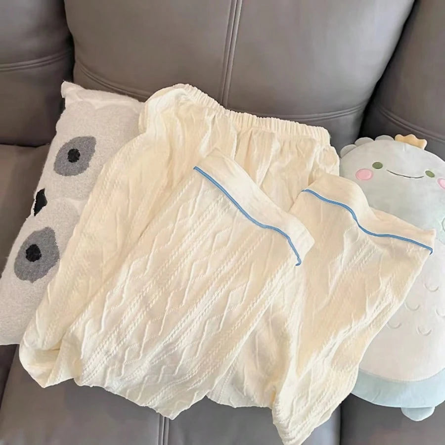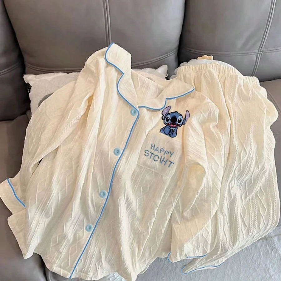 Adult Elegant Woven Polyester Pajamas - Four Seasons Off Shoulder Flower And Color Block Design, Soft