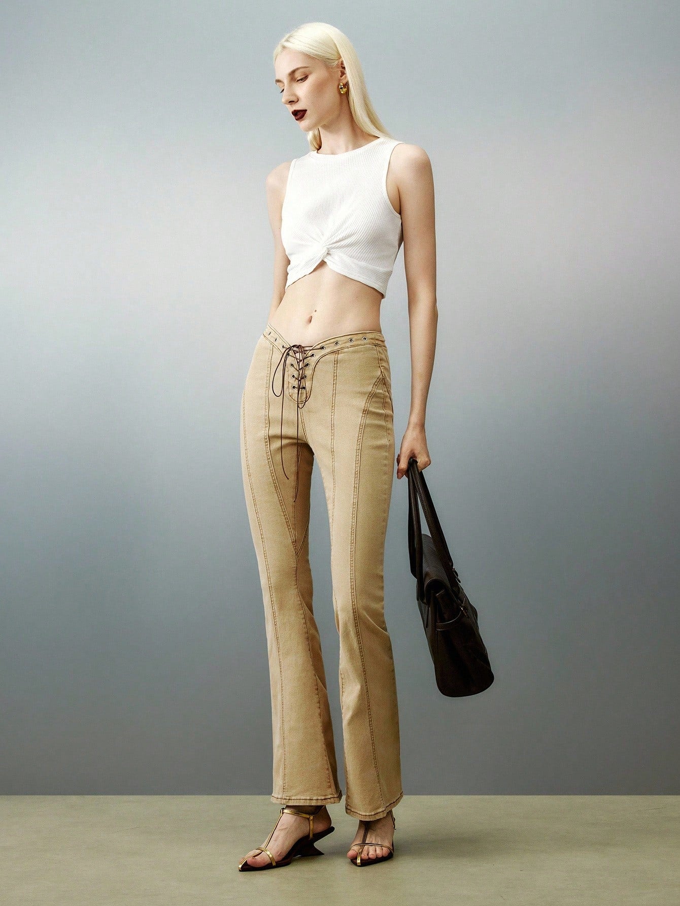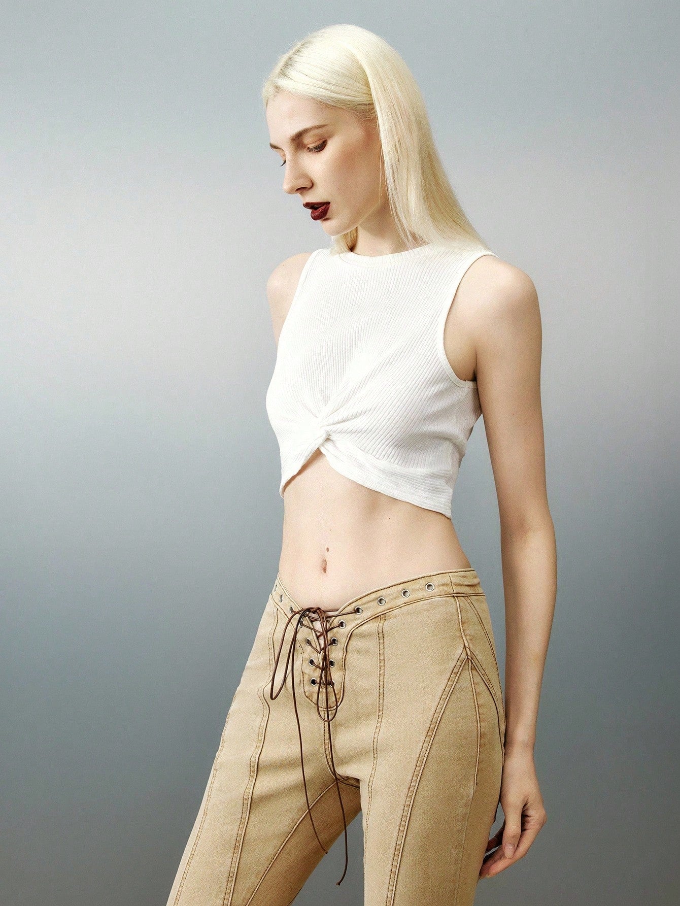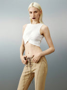 Airlisse Women's Twist Front Cropped Tank Top With Solid Color, Summer