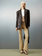 بلوزة نسائية قصيرة من Airlisse بتصميم ملتوي من الأمام بلون سادة، صيفية