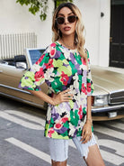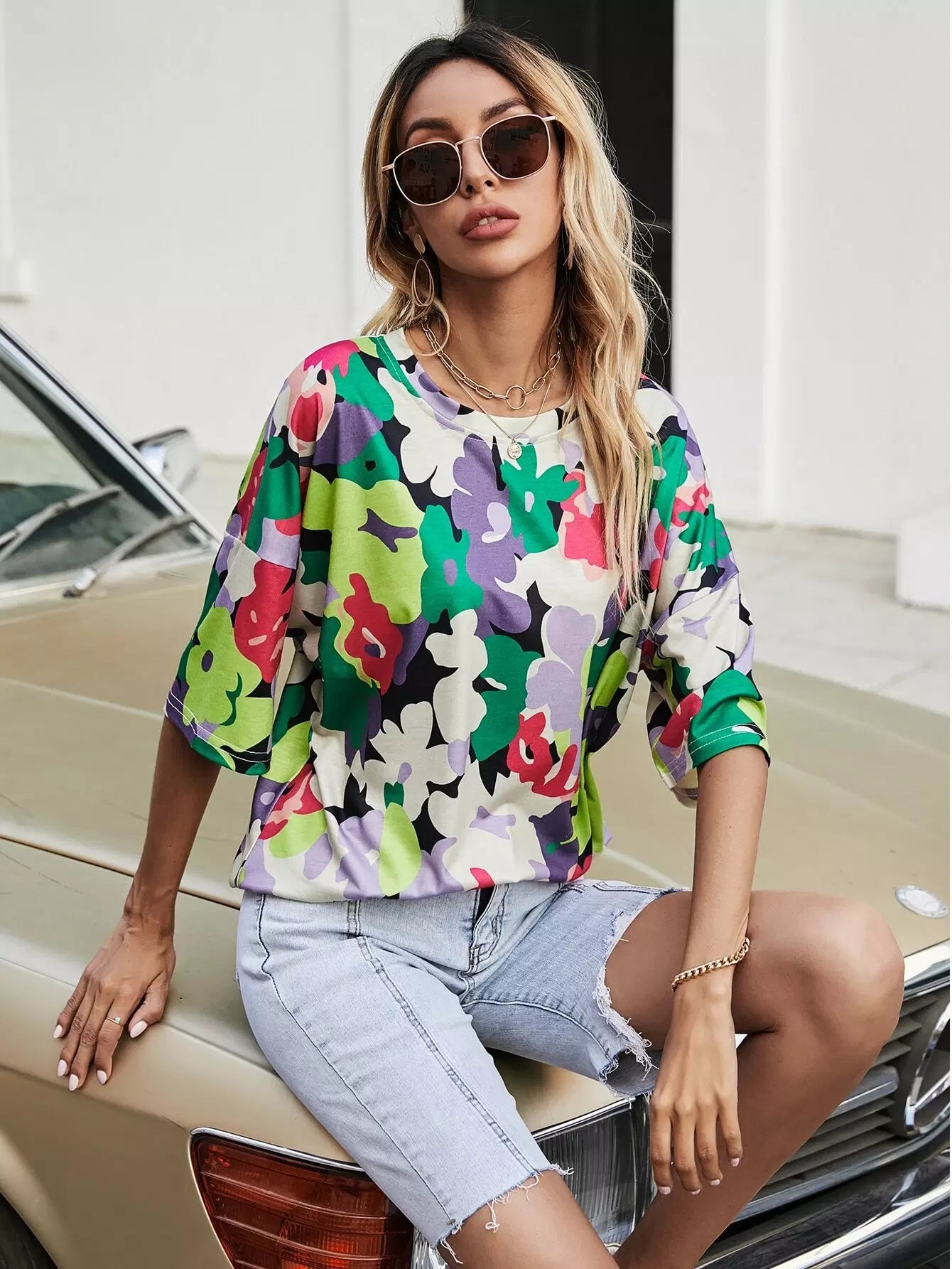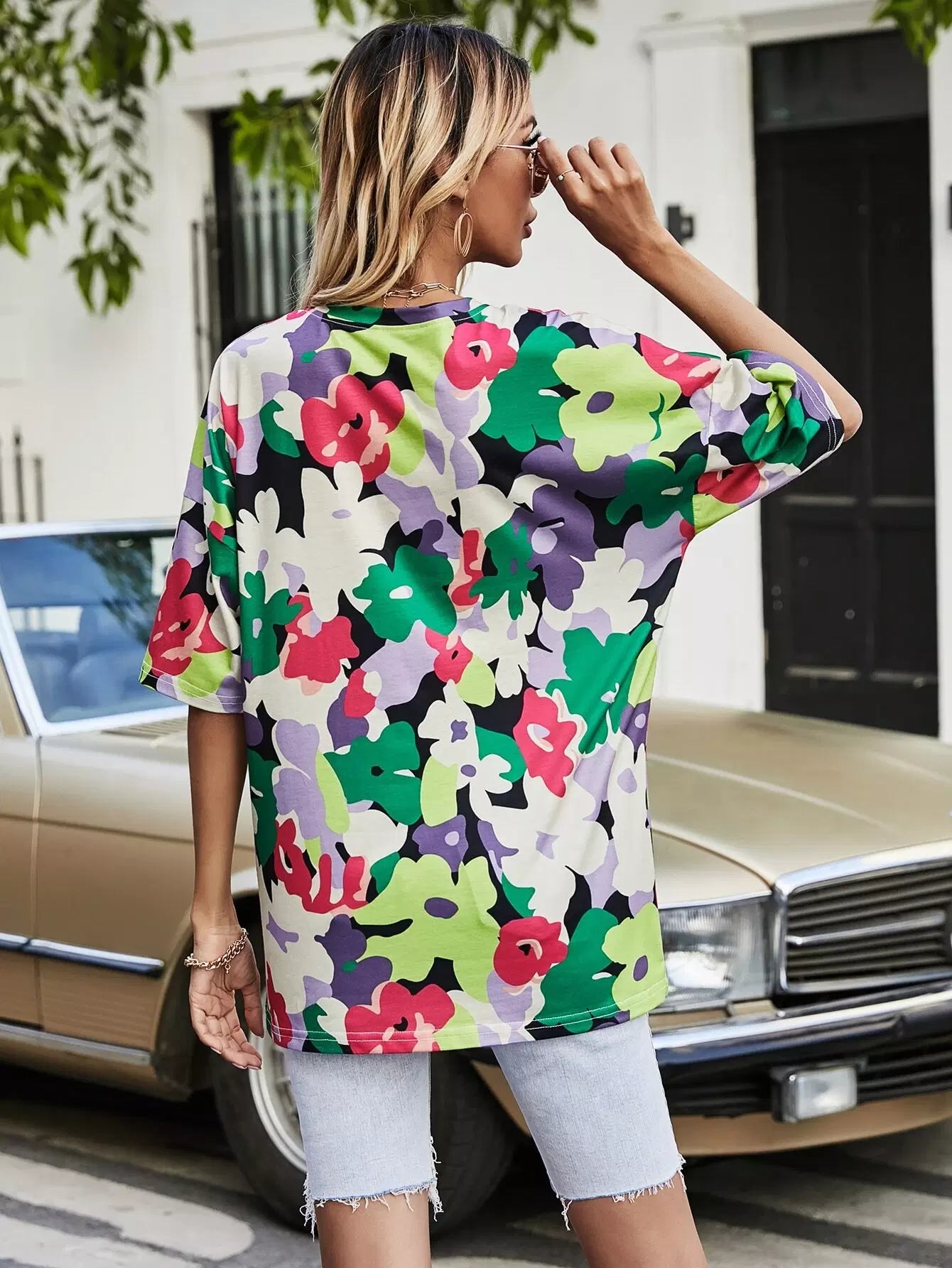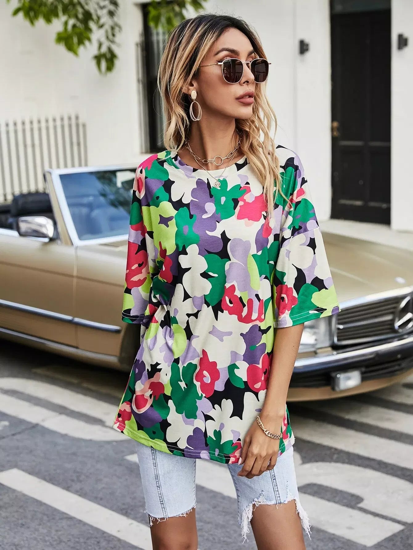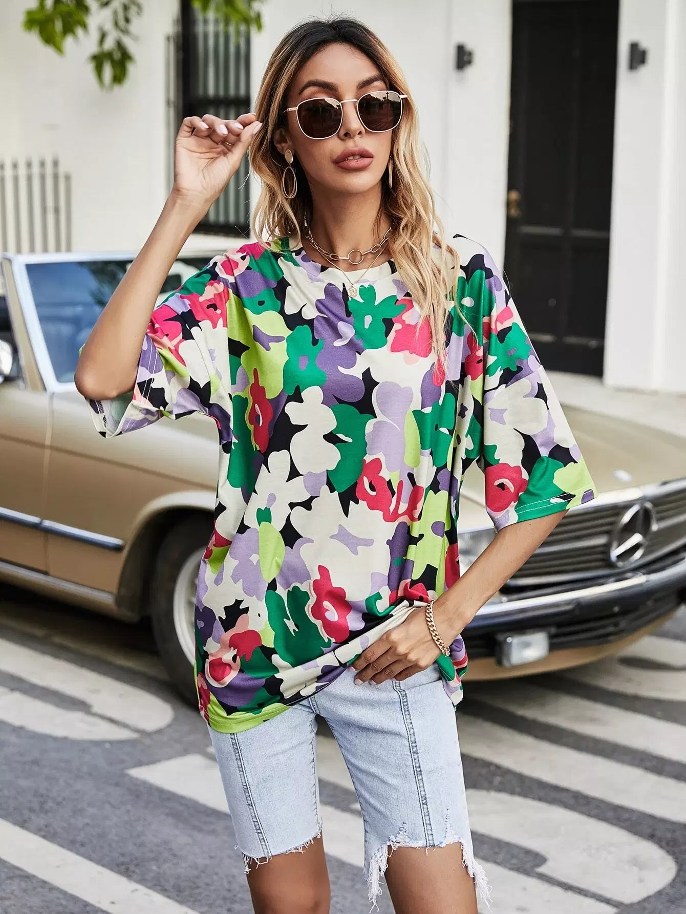 تي شيرت منسدل الكتفين مطبوع عليه بالكامل