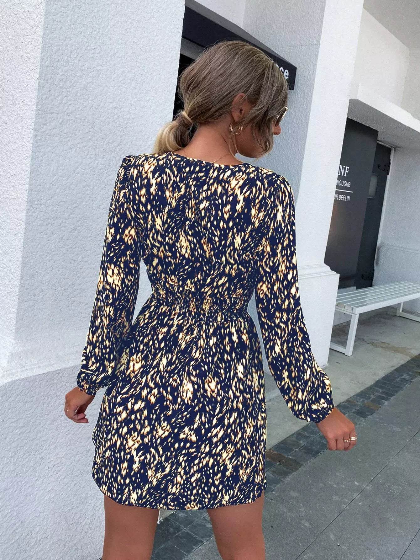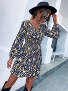 فستان بأكمام مطبوع بالكامل بطبعة فانوس بأكمام شيرد