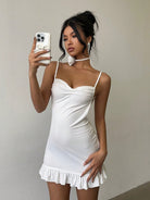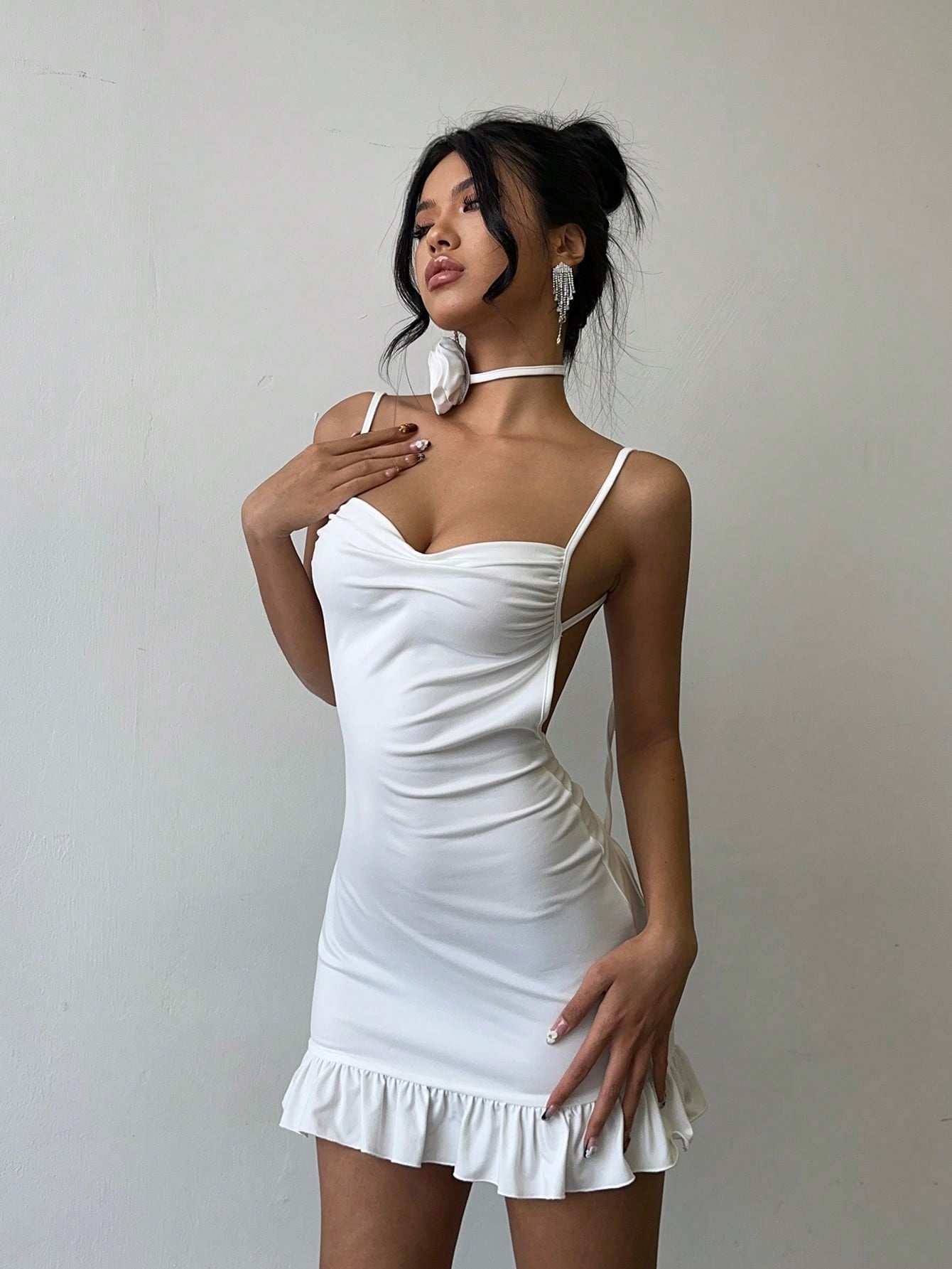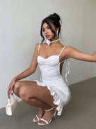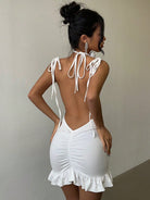 Aloruh 3D Floral Tie Backless Ruched Ruffle Hem Women's Mini Dress Ladies Spring Dress Prom Dress Easter