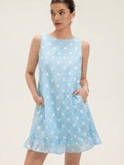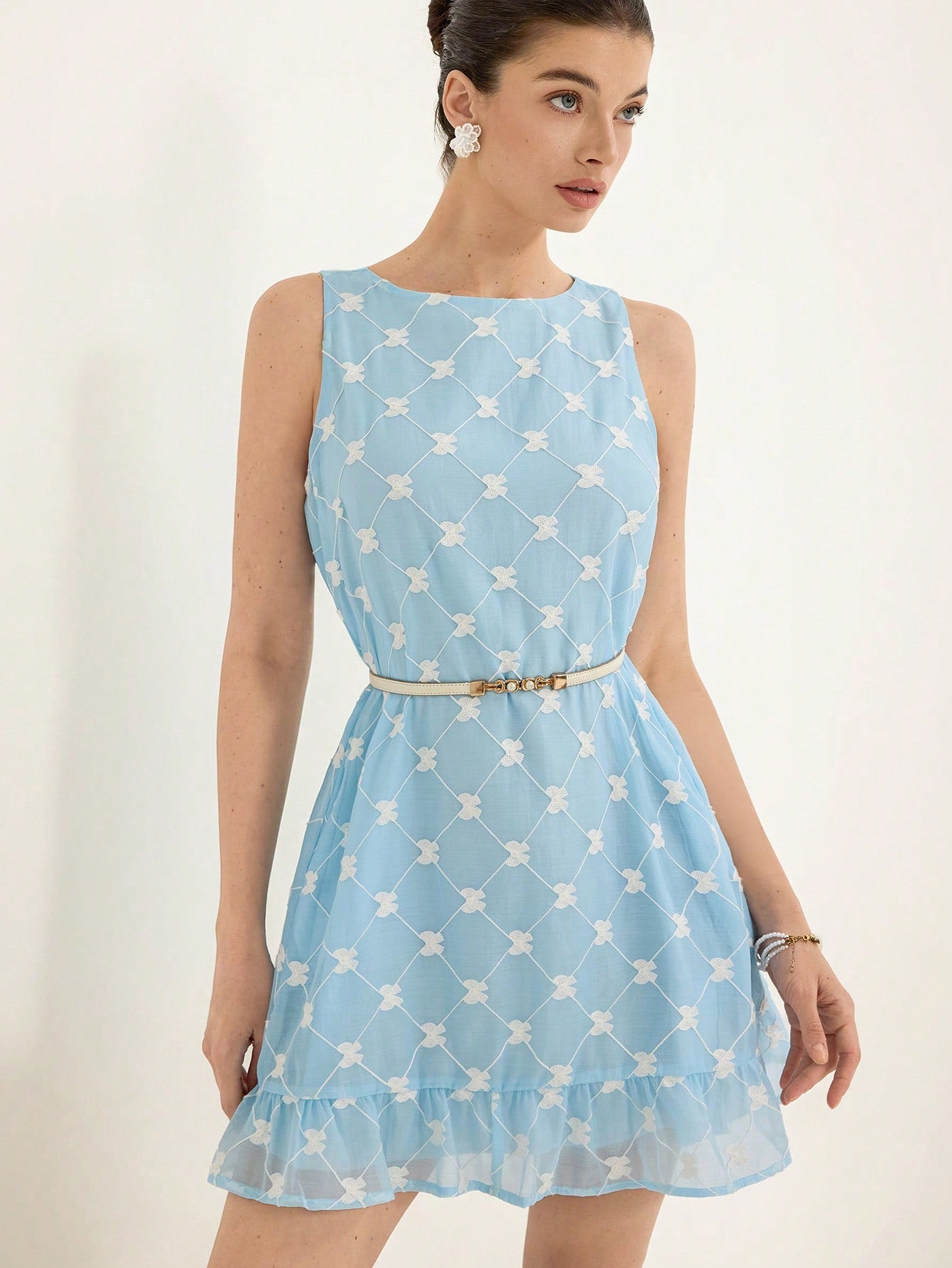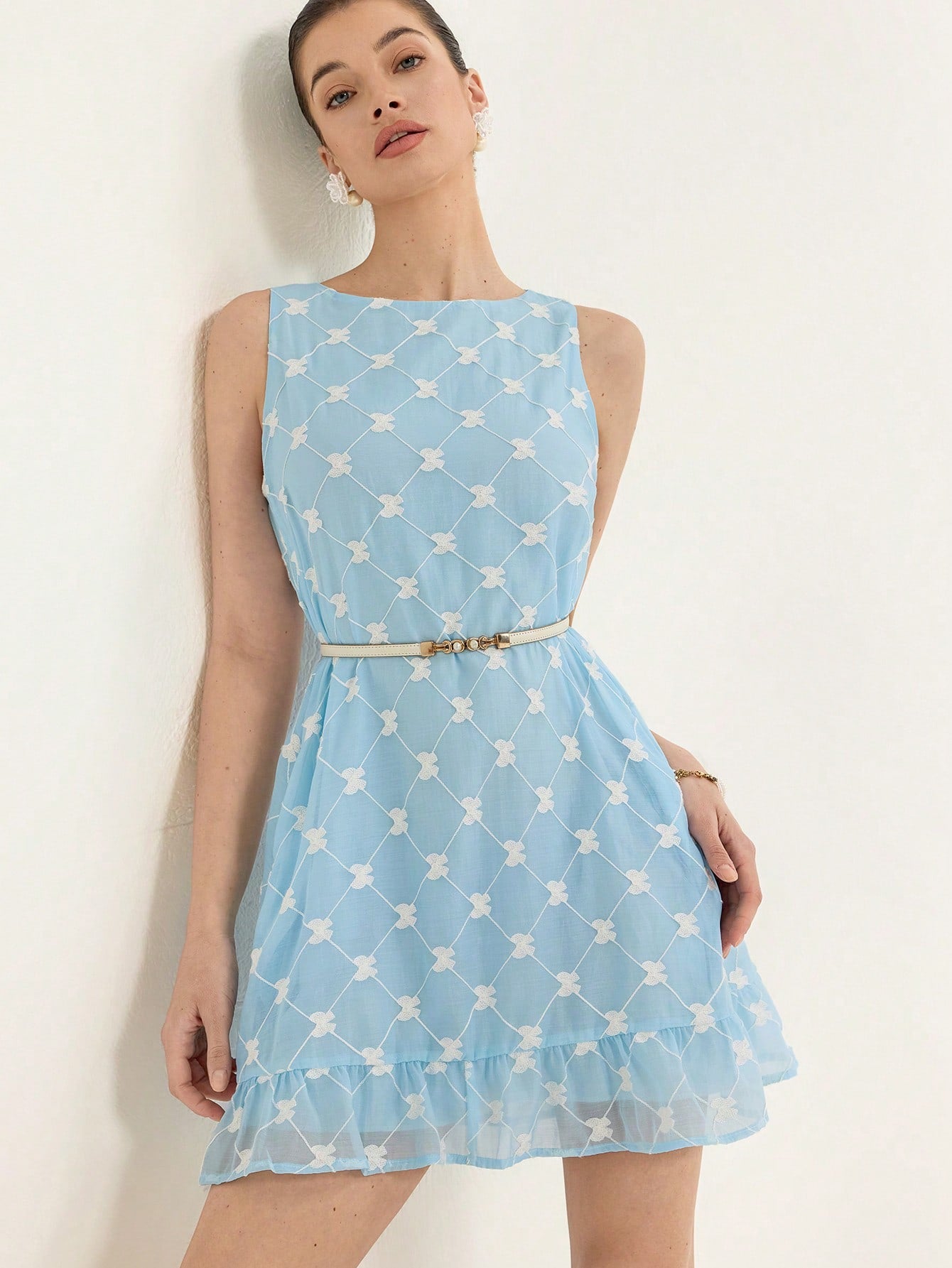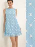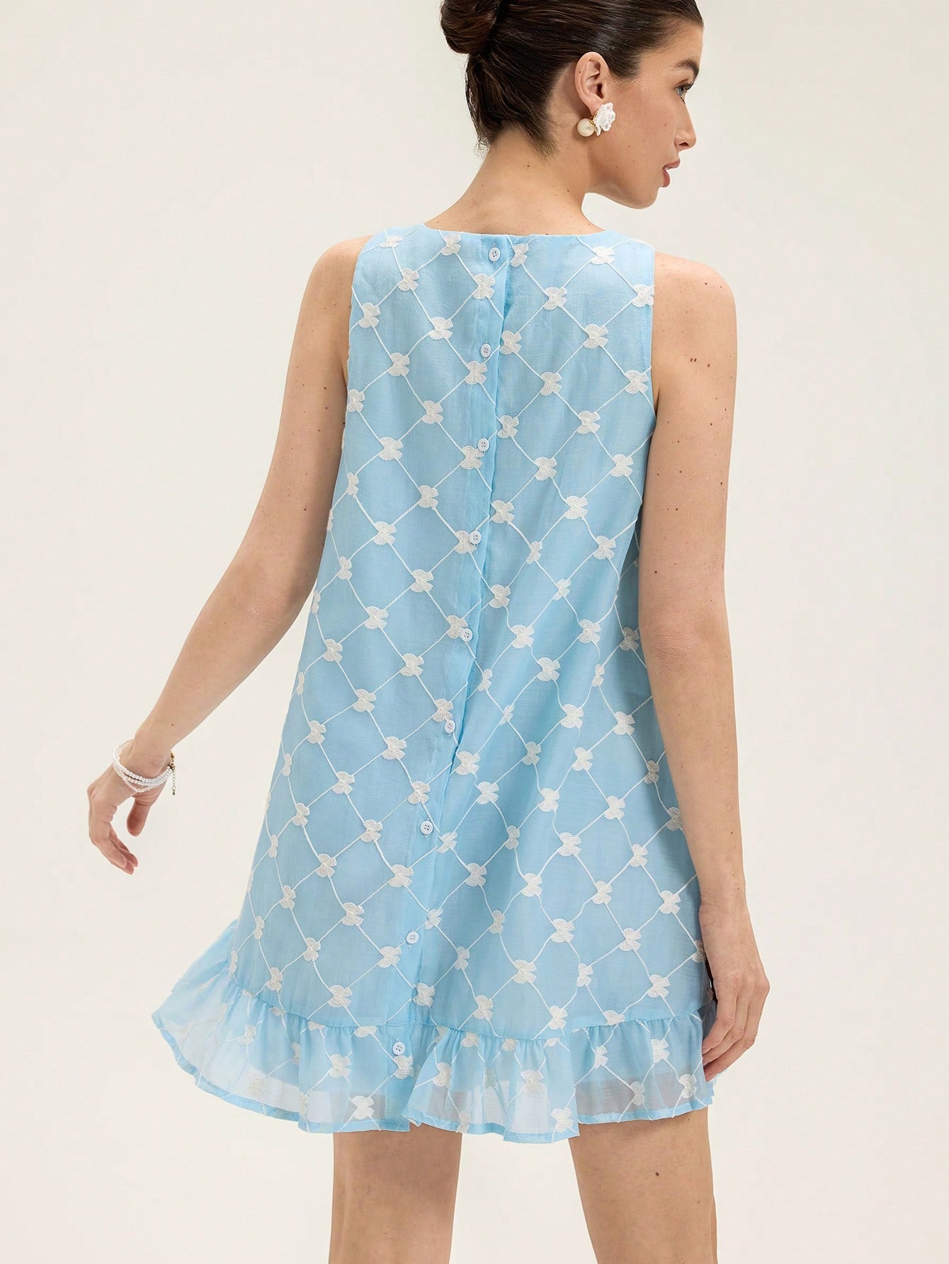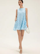Aveloria Rosie Bow Embroidered Jacquard Backless V-Neck Ruffled Hem Sleeveless Short Dress For Women