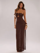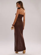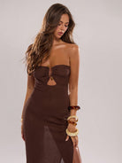 BAE Women Solid Color Elegant Sleeveless Knit Dress Summer Beach Vacation Chocolate Sweater Cover-Up