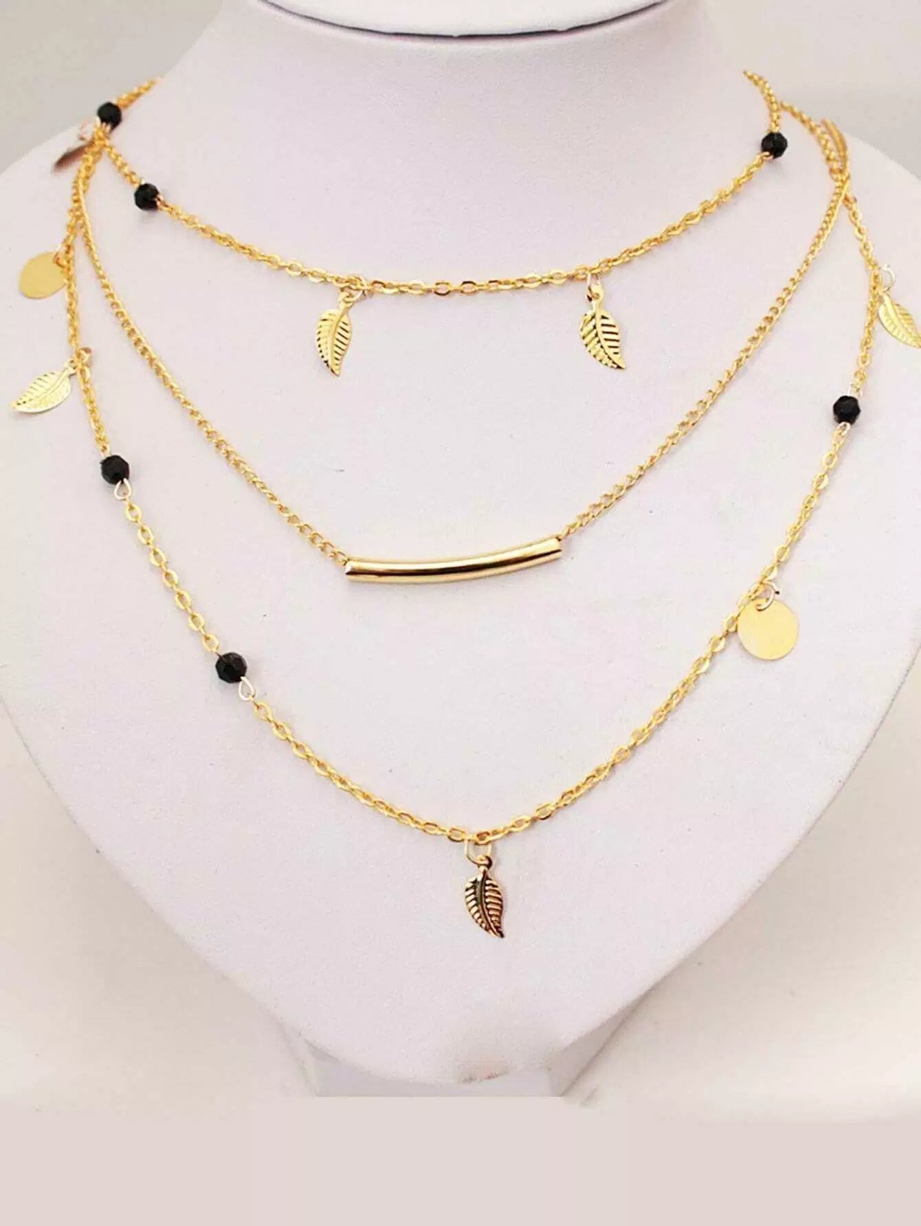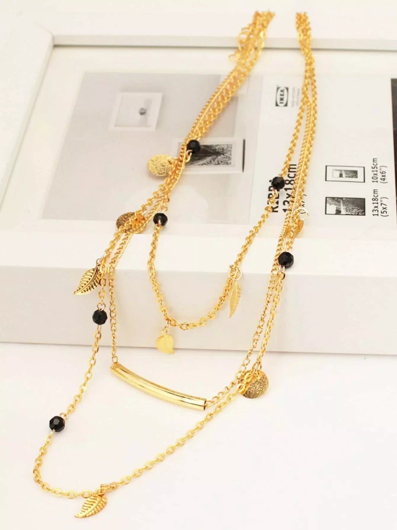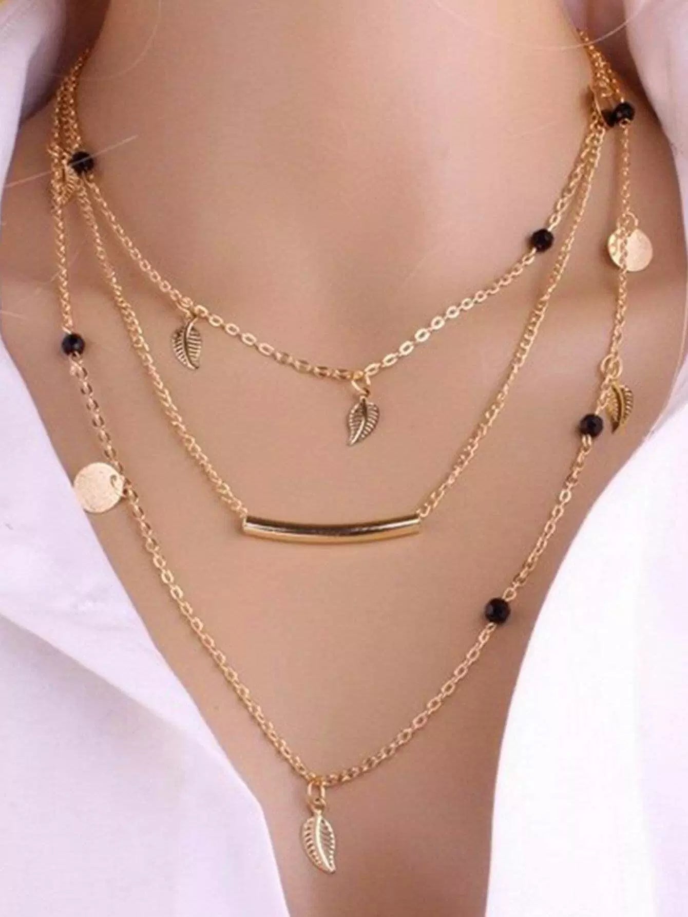 قلادة سلسلة متعددة الطبقات مزينة بأوراق الشجر والبار