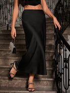 تنورة ماكسي أساسية بلون سادة وقصّة ضيقة