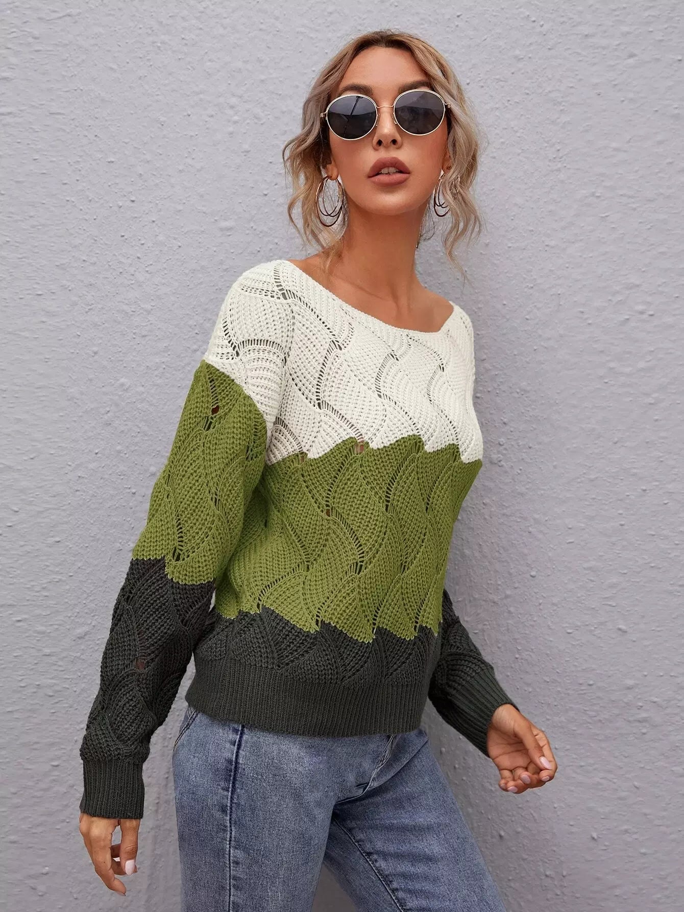 سترة برقبة قارب برقبة قارب ملونة