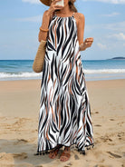 Breezaya Line Print Tassel Decor A-Line Vacation Dress For Women