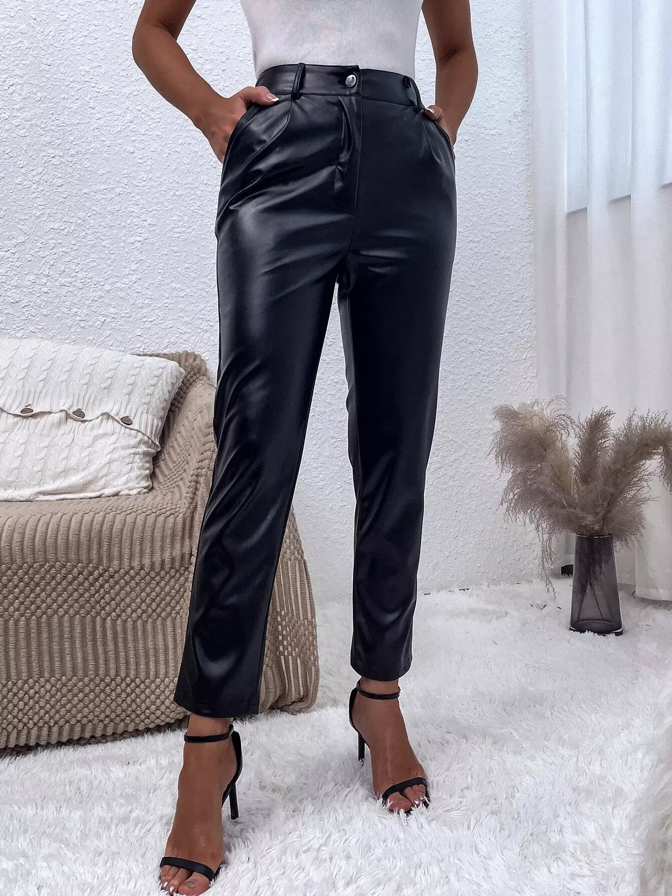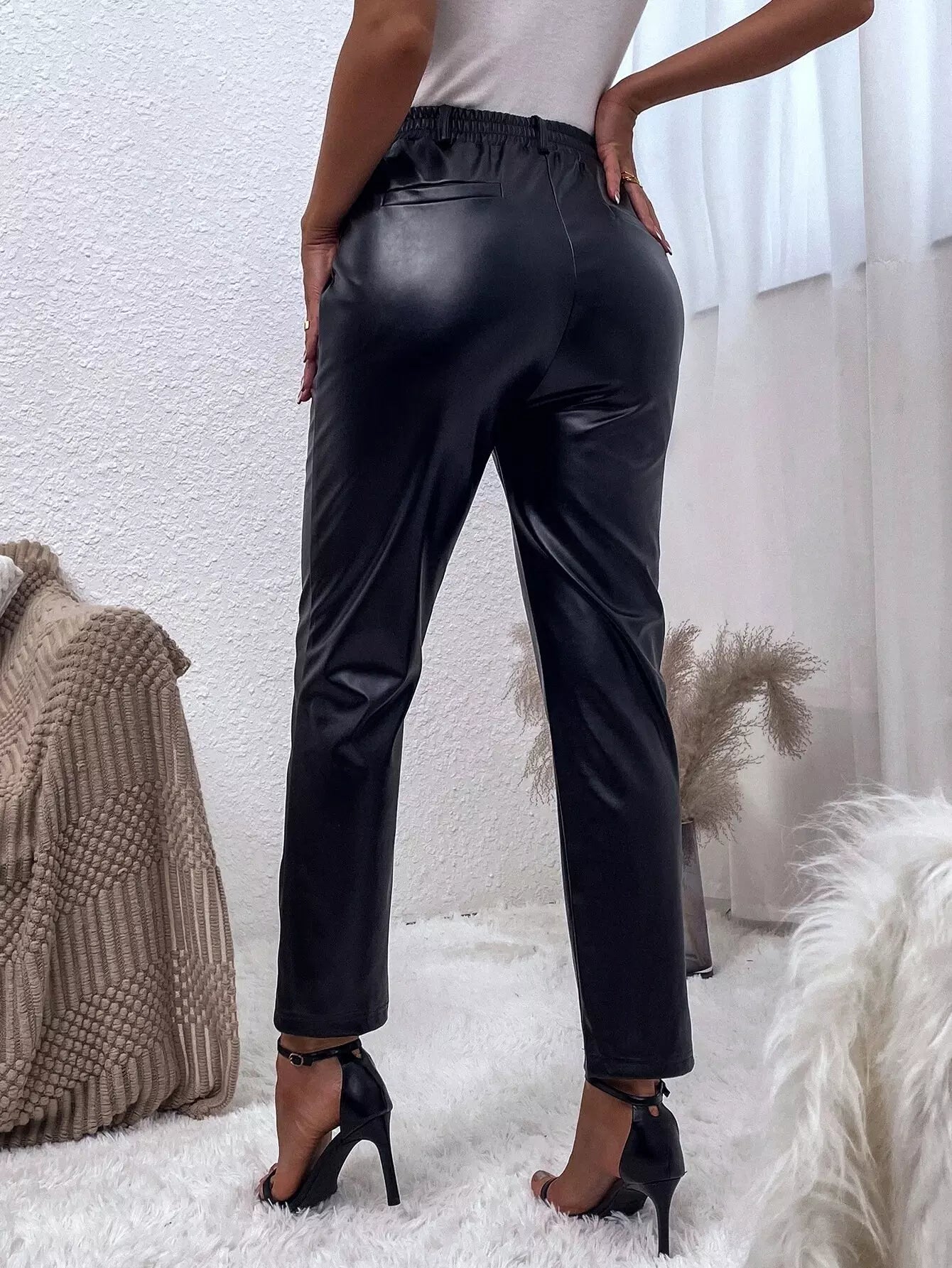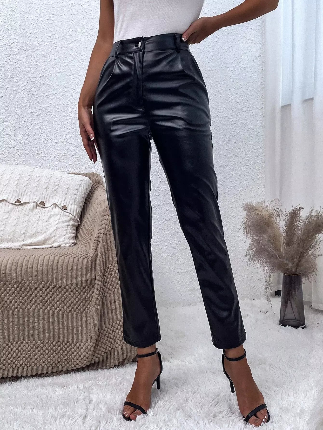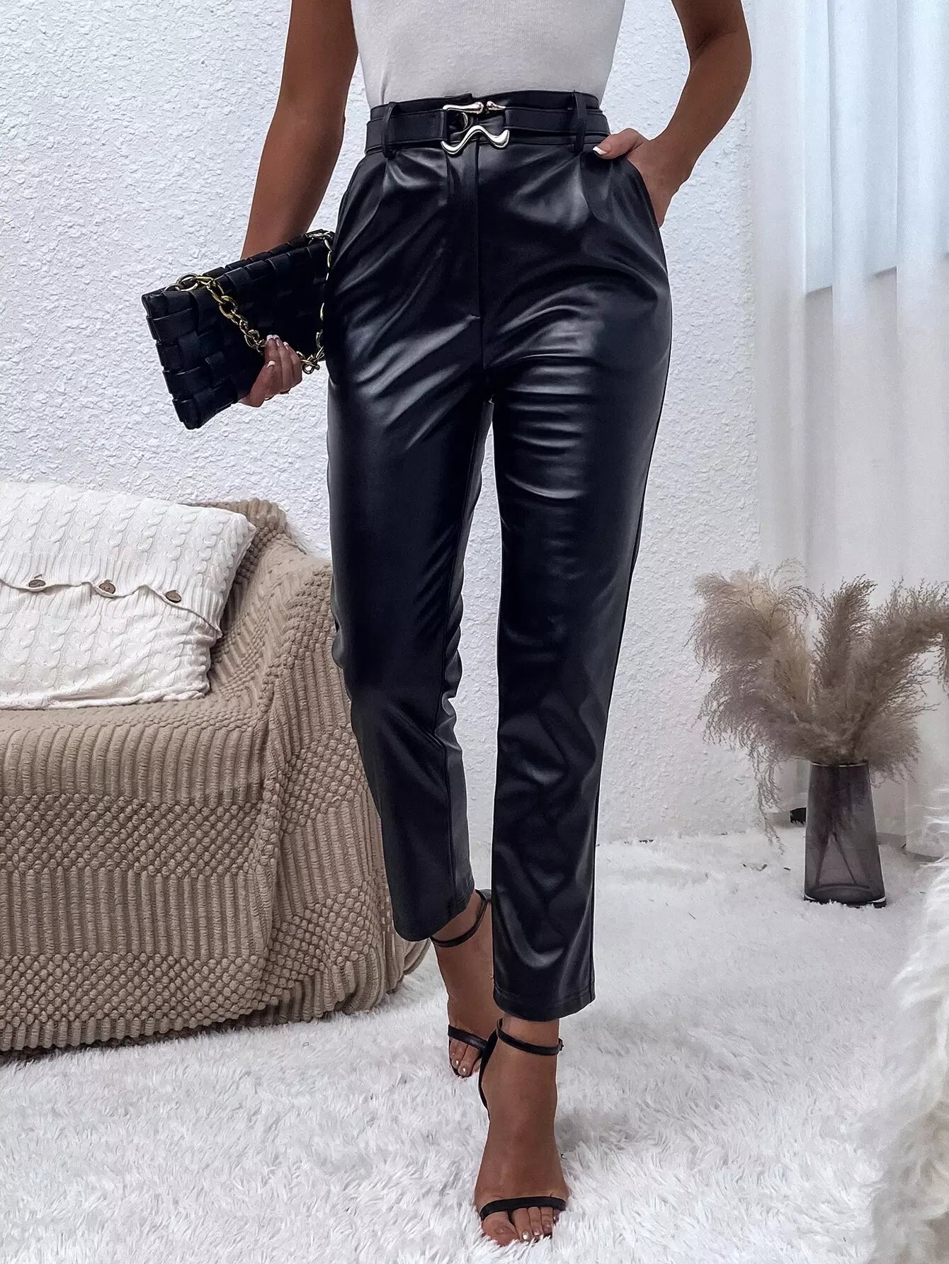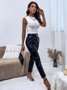 بنطال جلد PU ملتوي بدون حزام