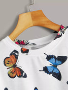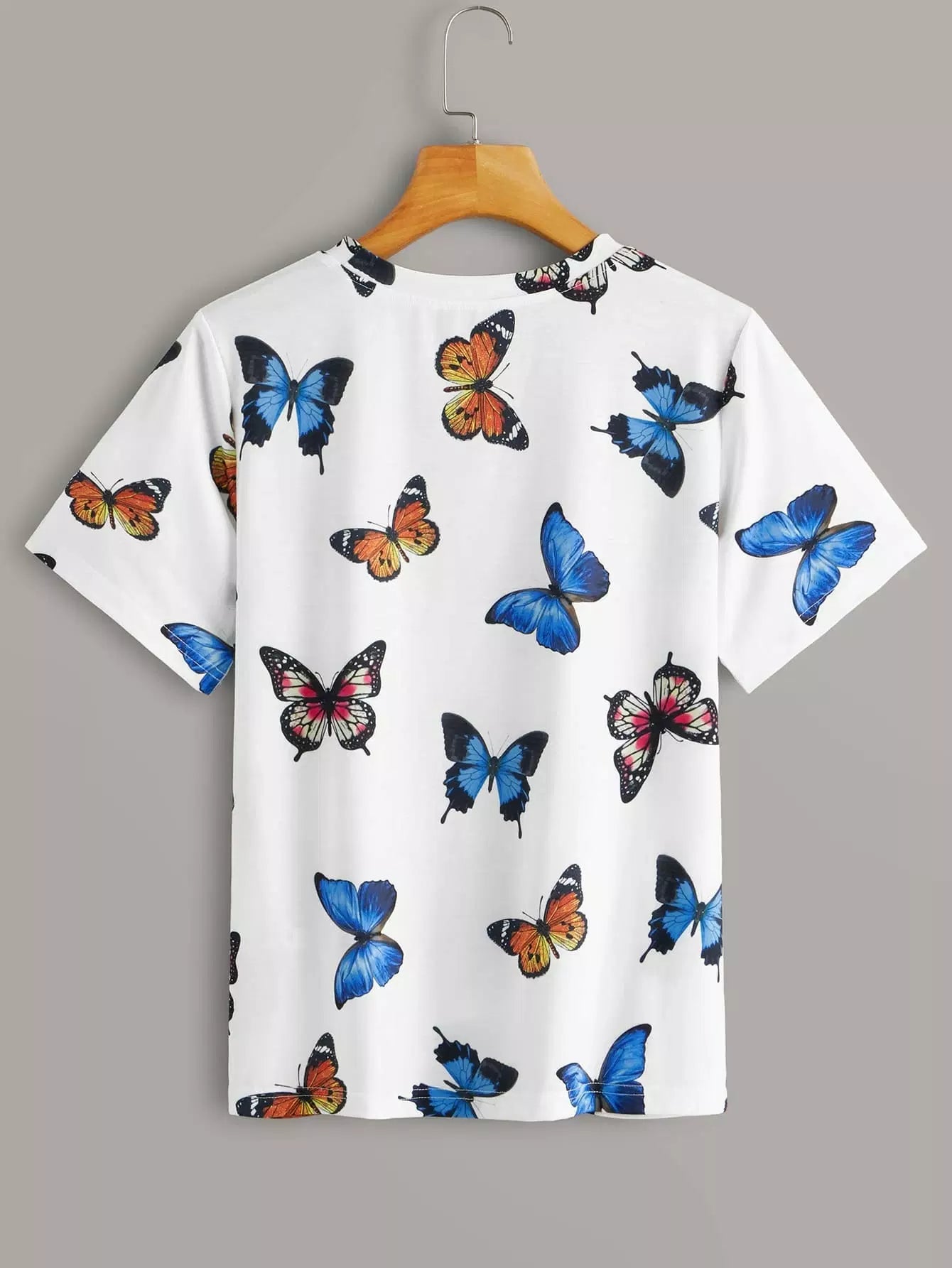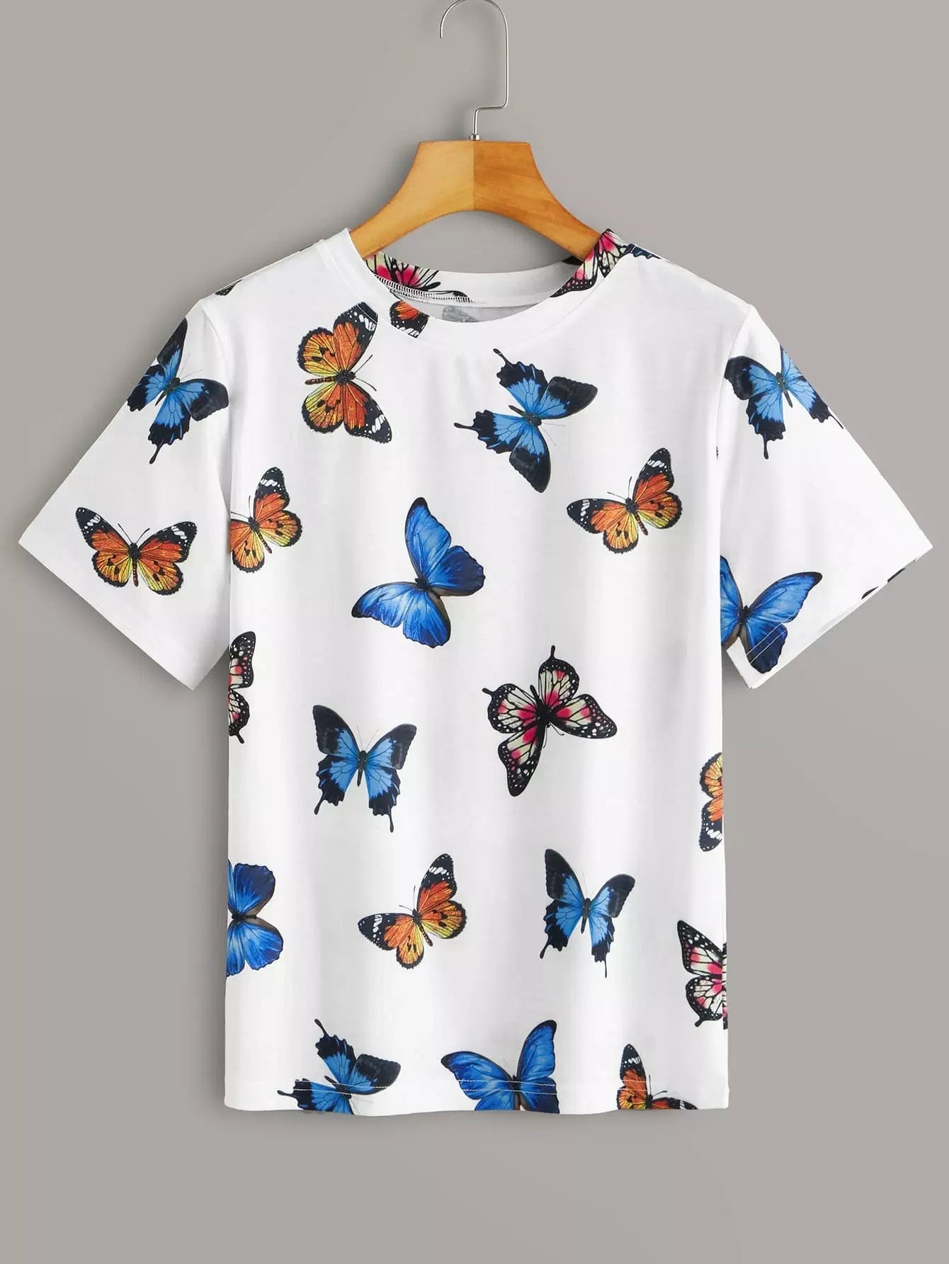 قميص برقبة مستديرة مطبوع عليها فراشة