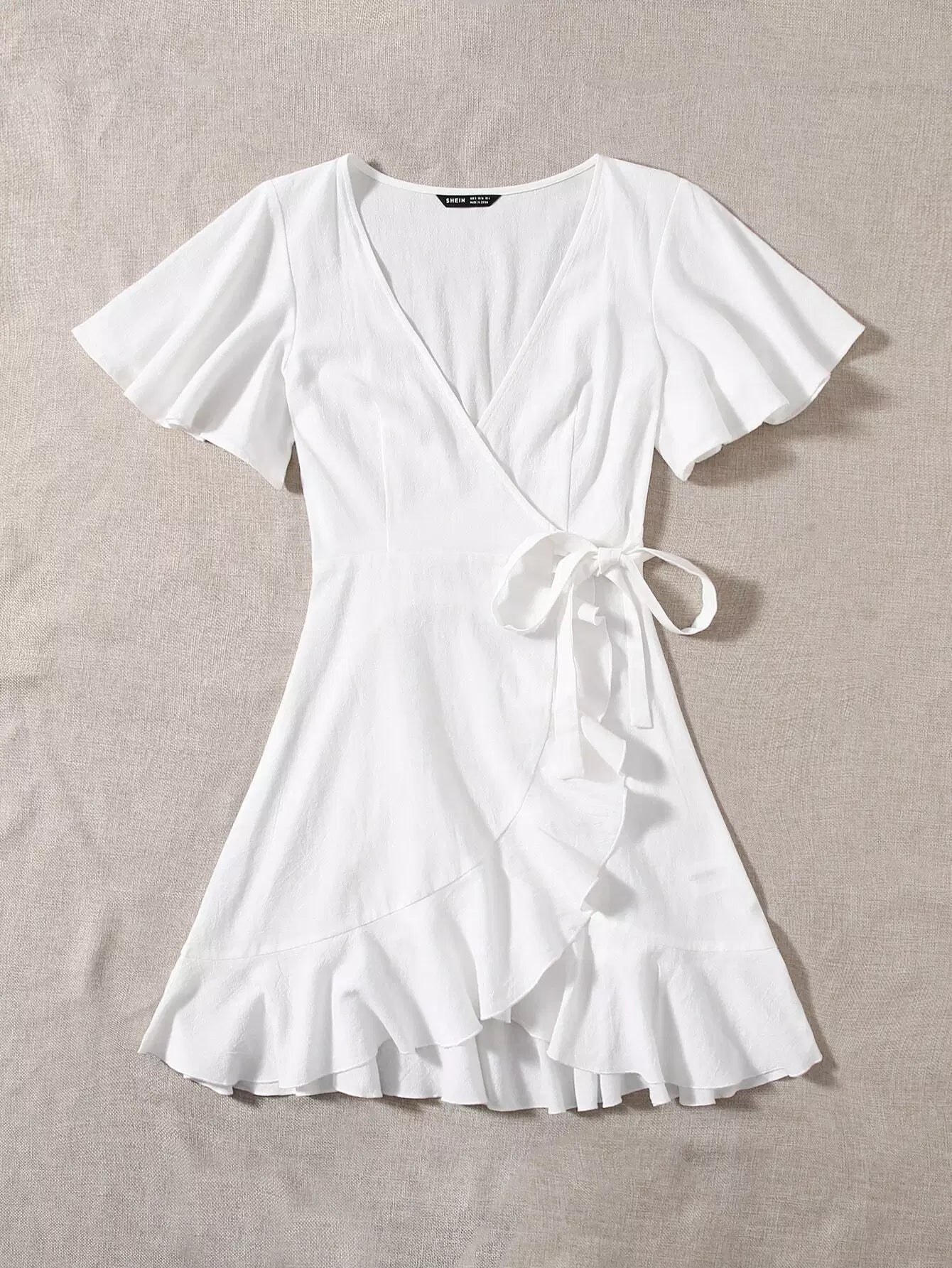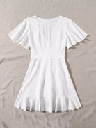 فستان ملفوف بأكمام فراشة وكشكشة بدون حزام