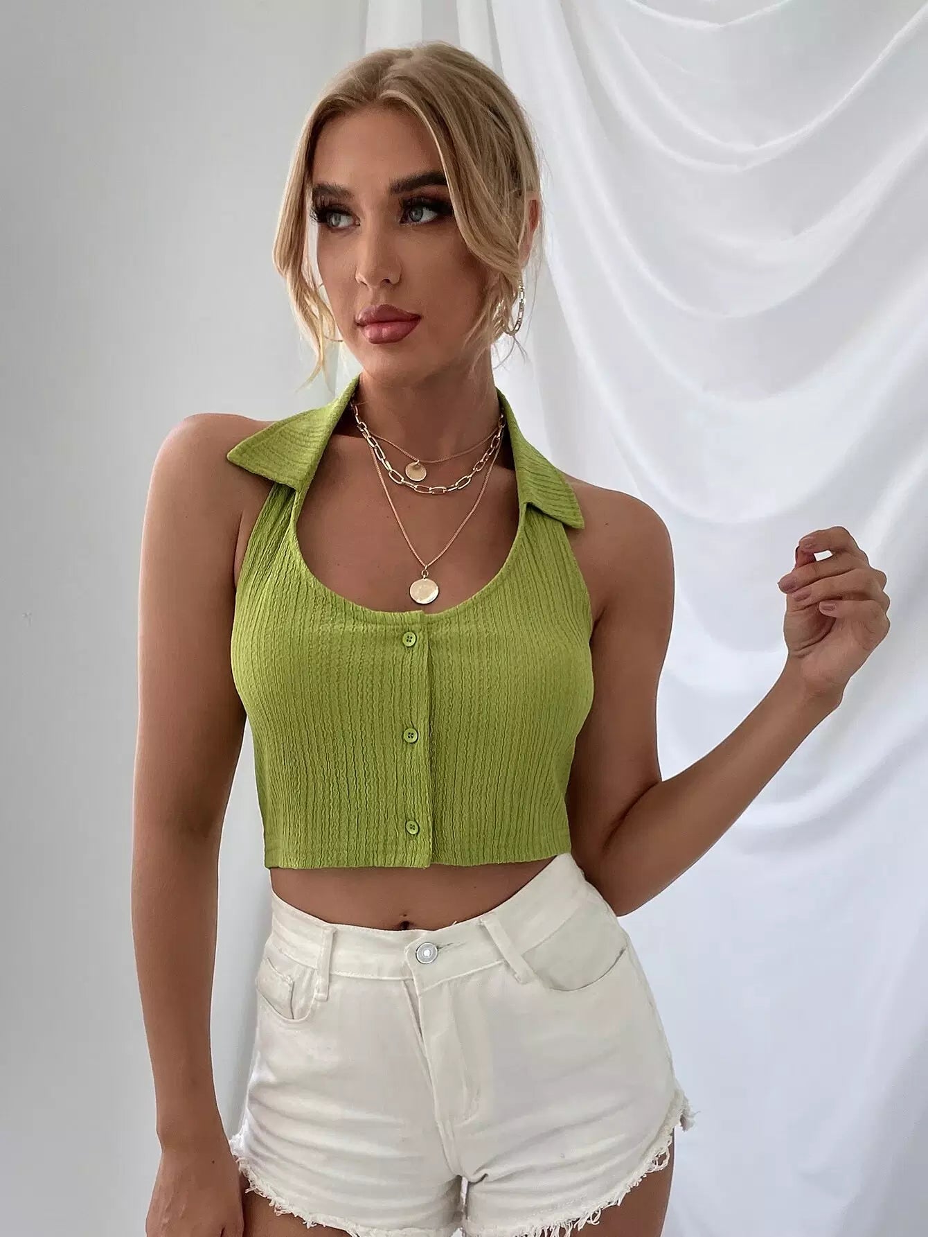 بلوزة بدون أكمام بأزرار أمامية