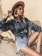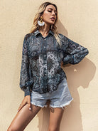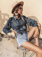 للنساء - قميص بطبعة بيزلي بأزرار أمامية