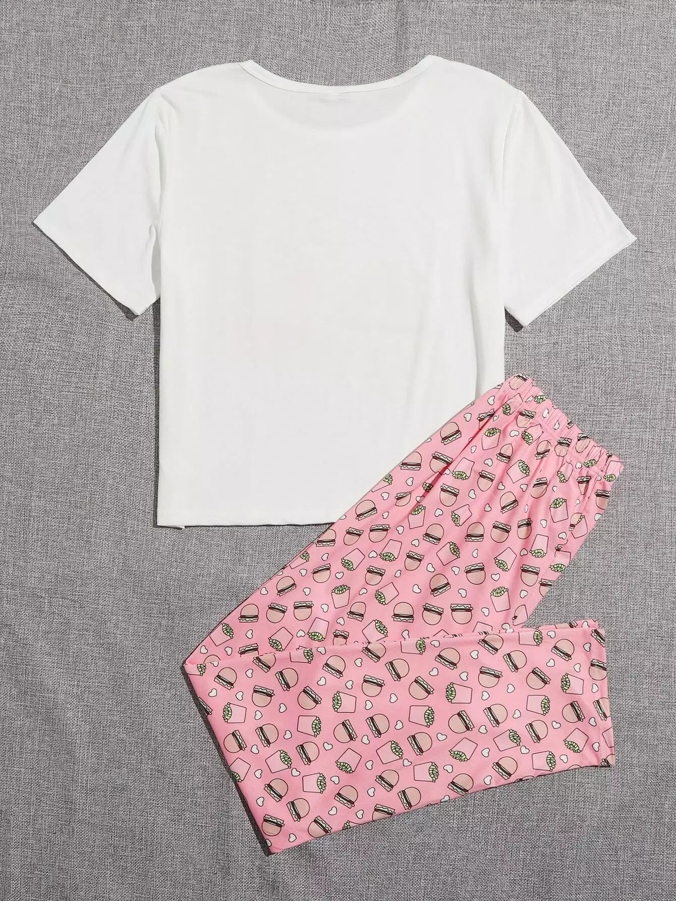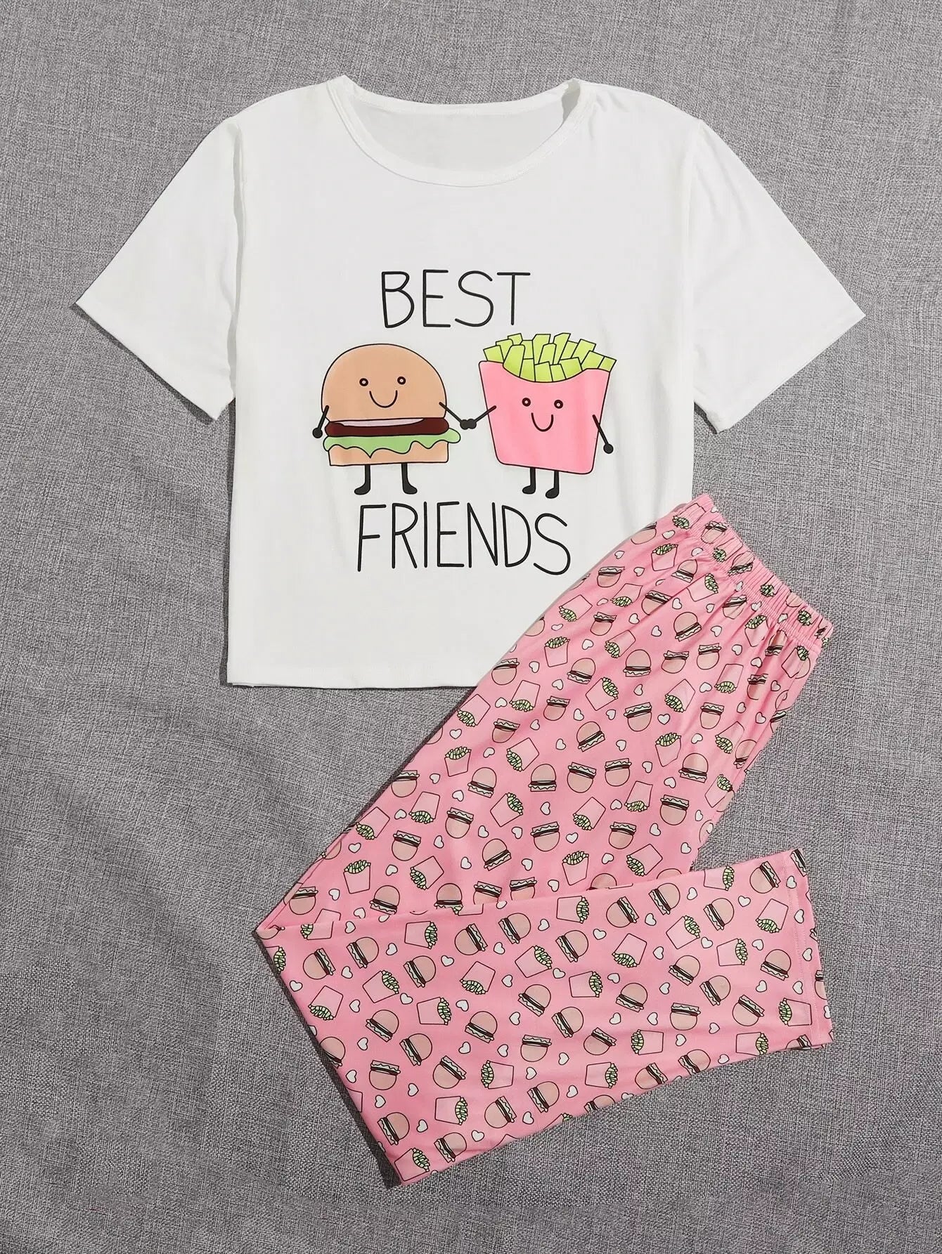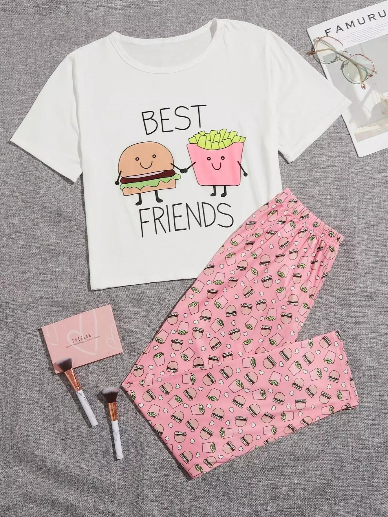 طقم بيجامة برسومات كرتونية ورسومات حروف