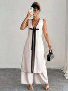 طقم ملابس كاجوال أنيق من قطعتين من Celure: بلوزة طويلة بدون أكمام بألوان متباينة وبنطلون واسع الساق.