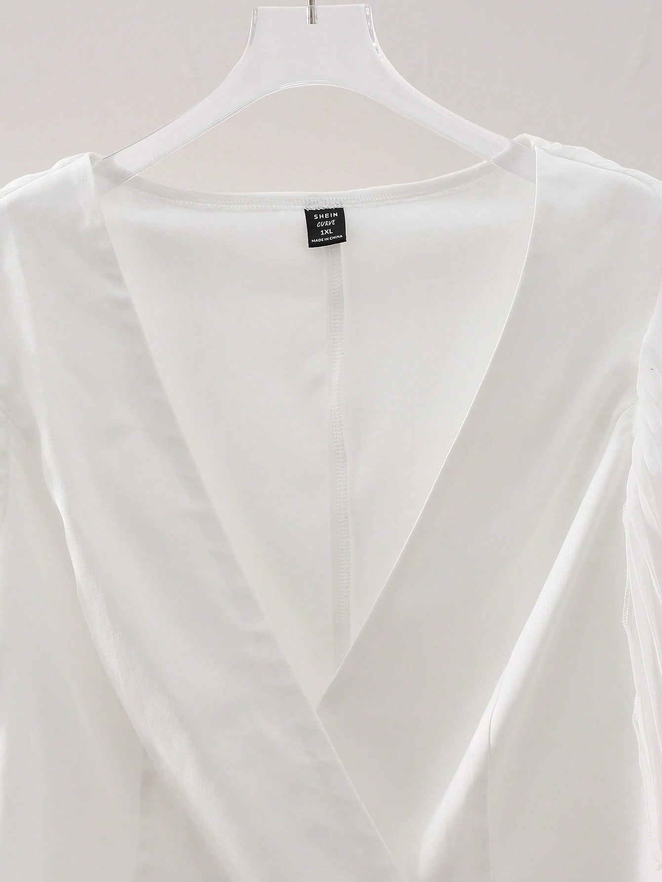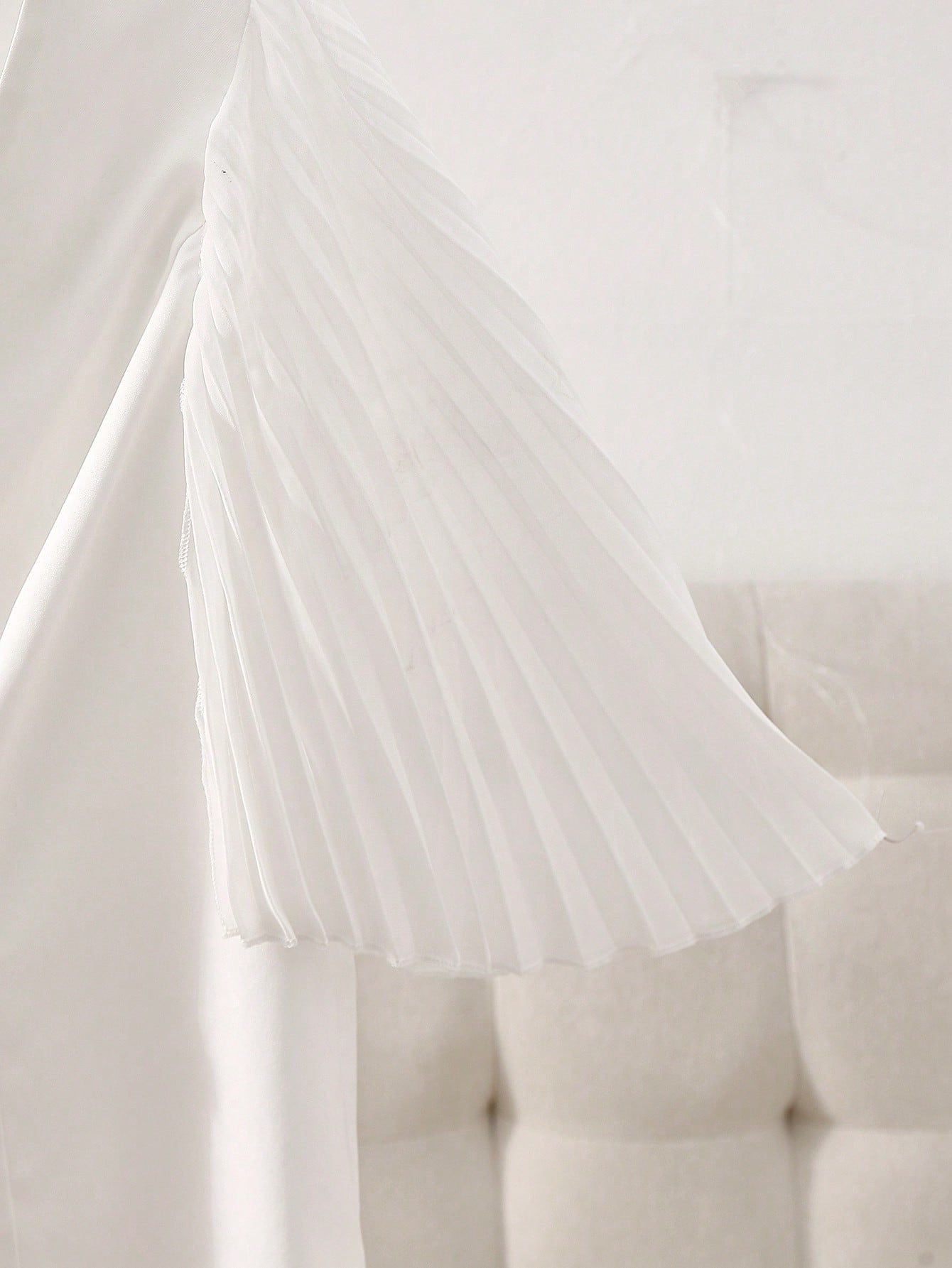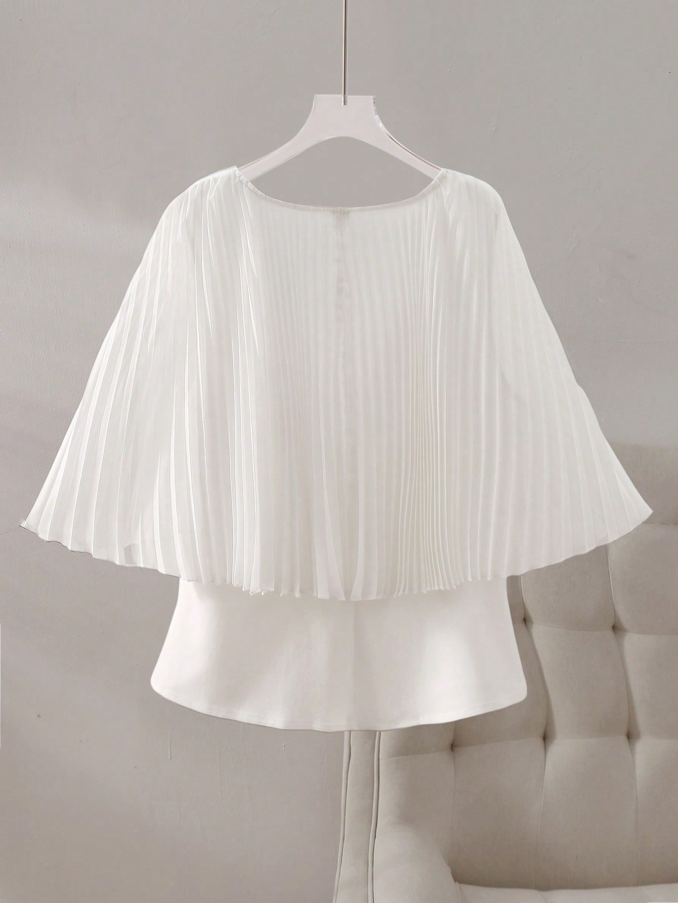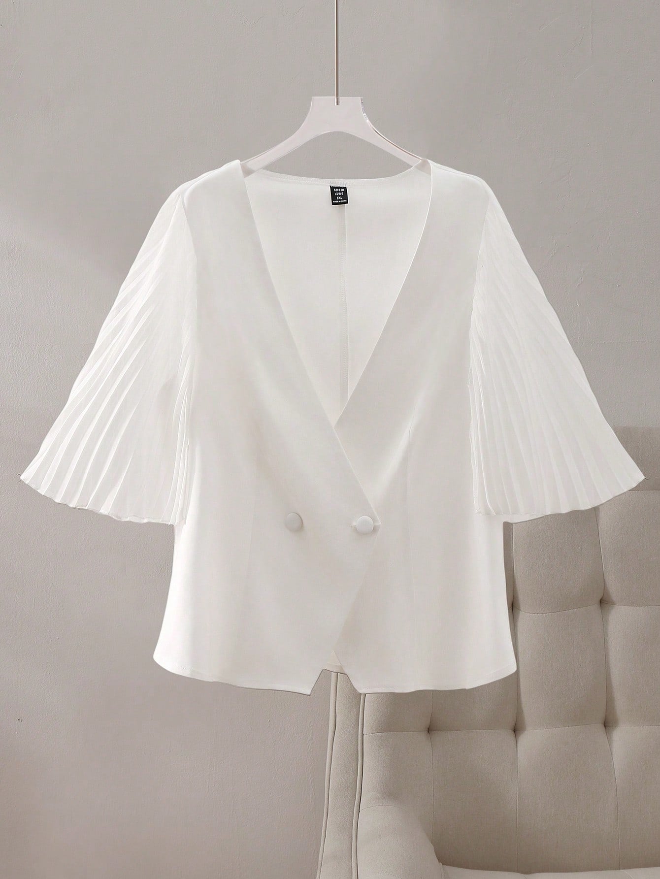 Celure Plus Size V-Neck Pleated Cape Style Minimalist Commute Jacket For Women