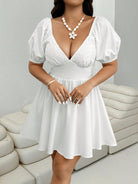 Celure Women Solid Color Lace Trim Woven Splice Plain Midi Dress