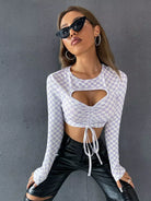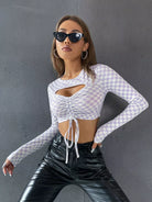 تي شيرت قصير بطبعة مربعات مع رباط وفتحات