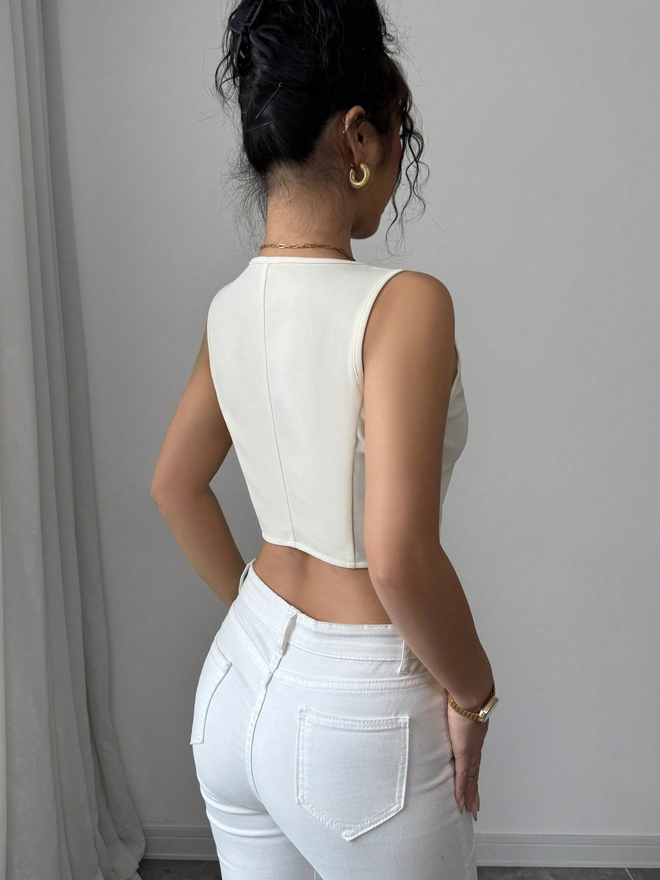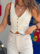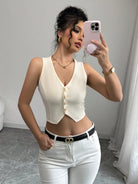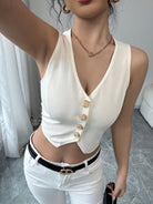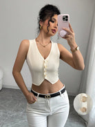 Chiquease Women Front Button Sleeveless Cropped Shirt, Solid Color