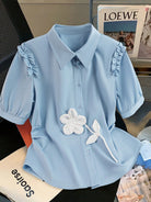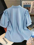 Chiquease Women's Single-Breasted Ruched Short Sleeve Blouse