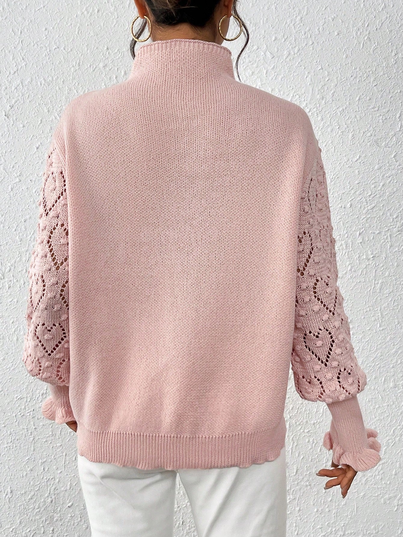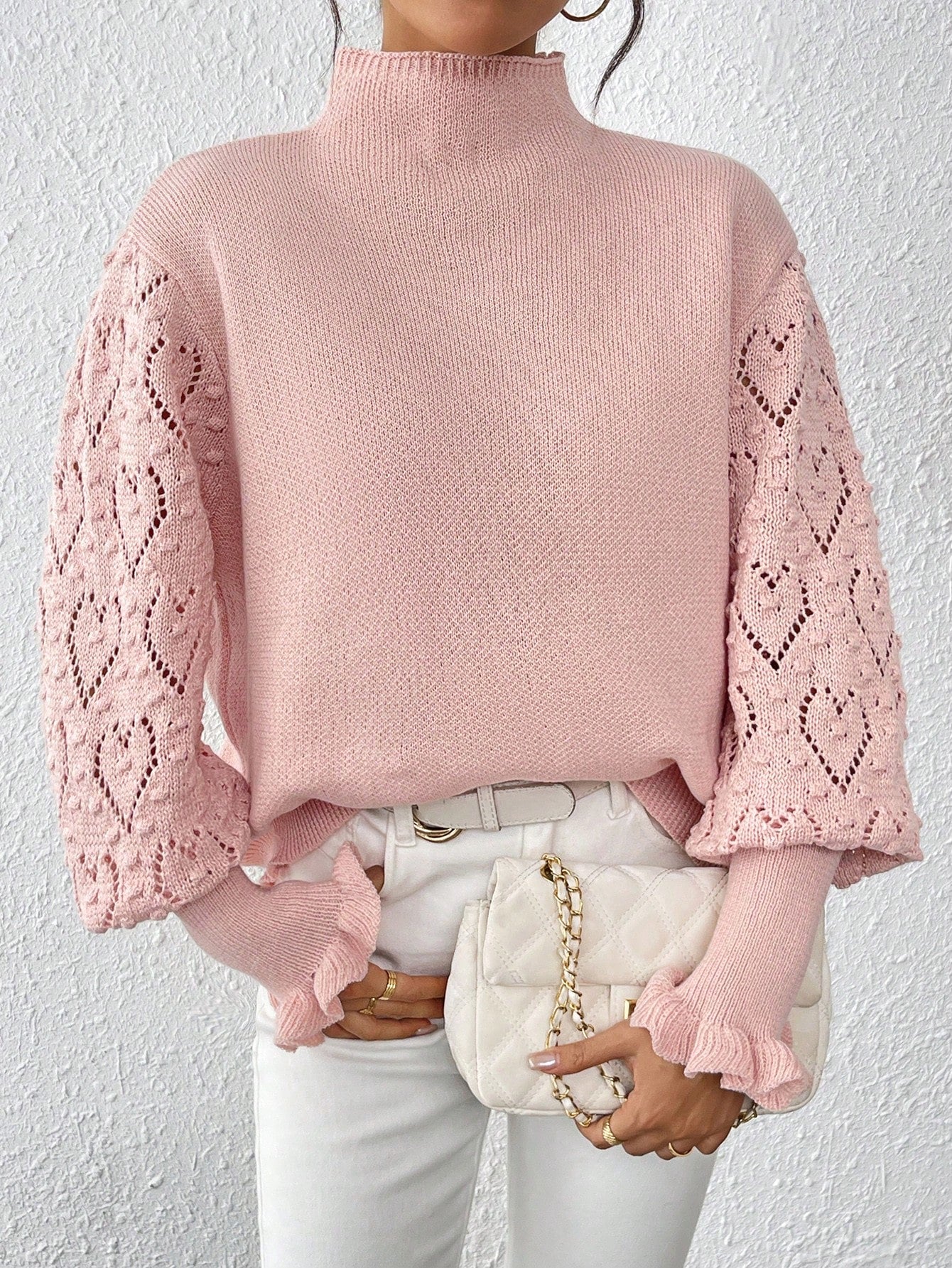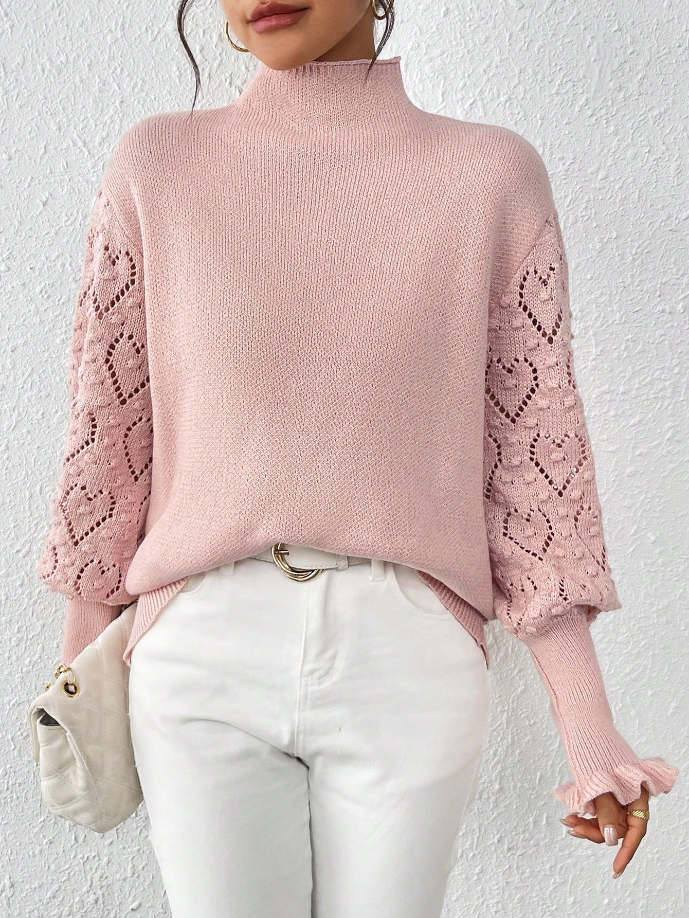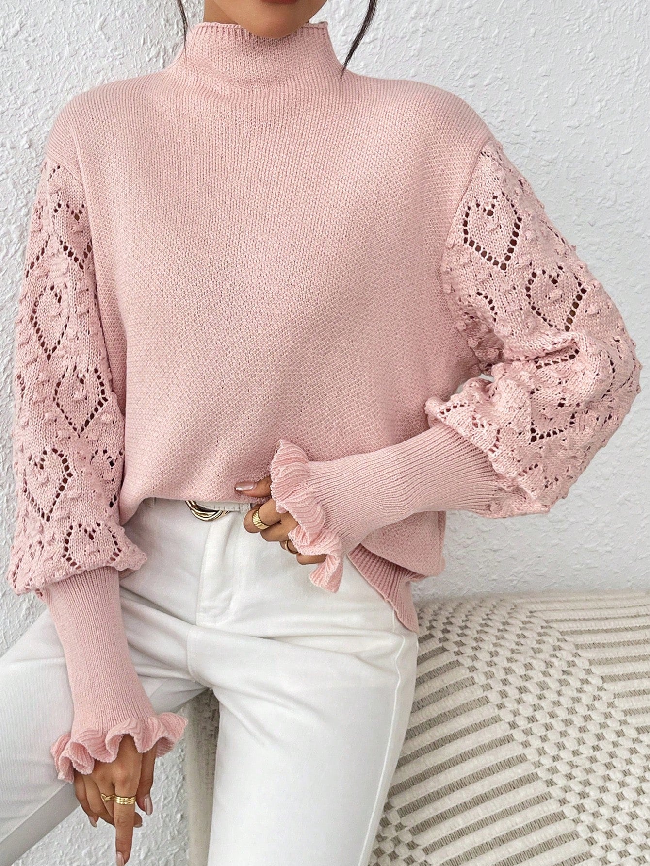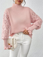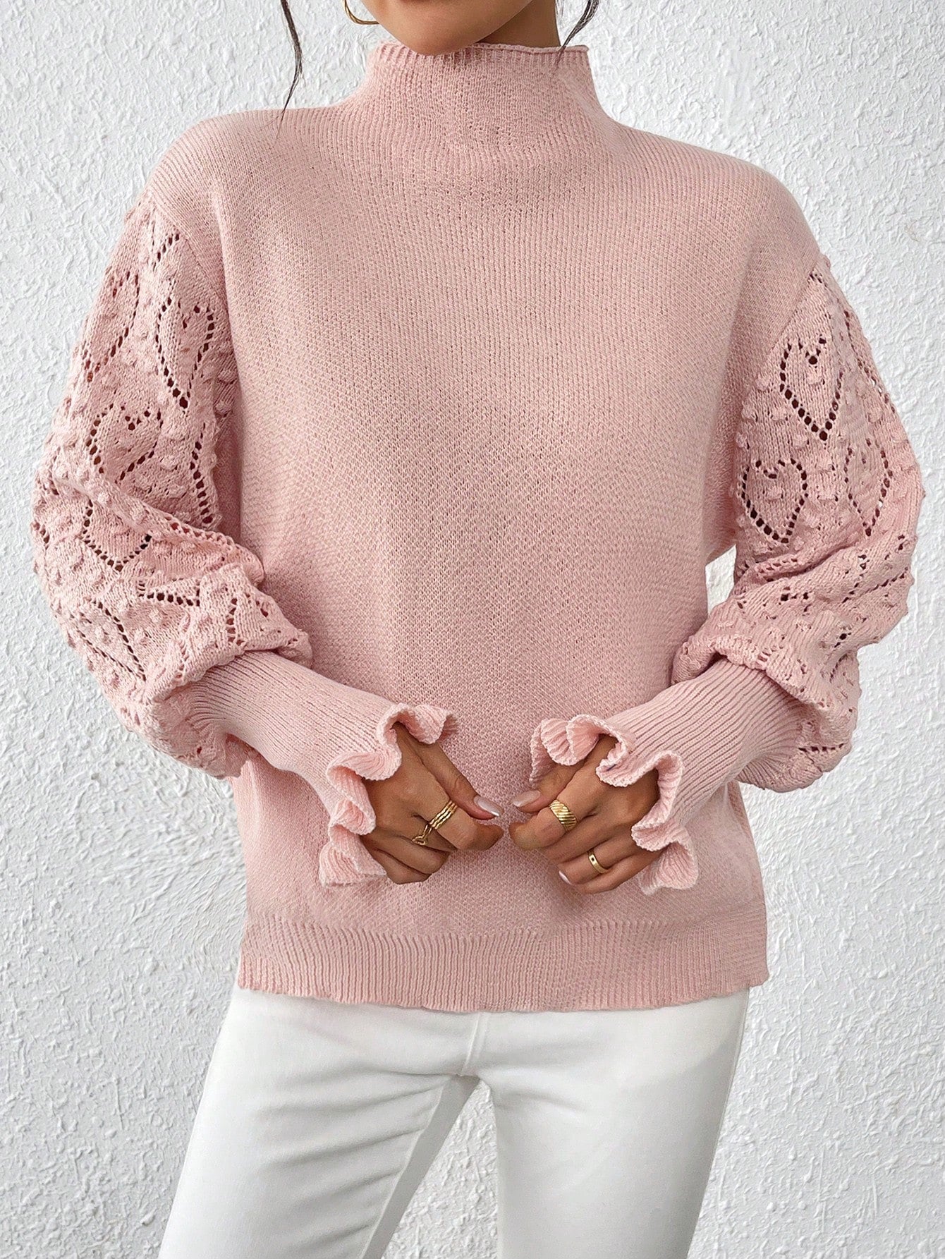 women Chiquease Women's Solid Color Stand Collar Long Sleeve Hollow Out Casual Pullover Sweater Knit Pullover Fall Winter Outfit
