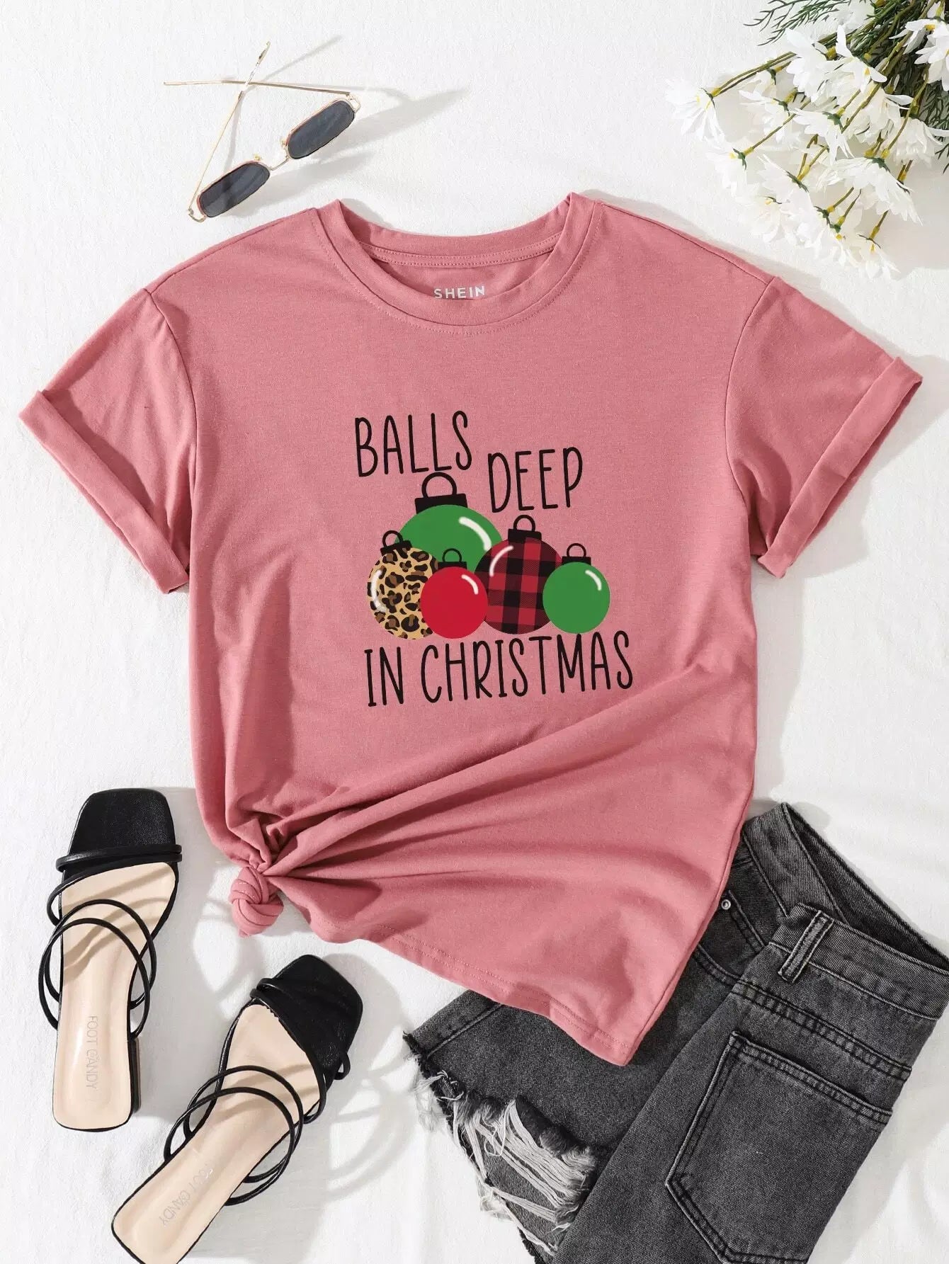 تي شيرت برسومات كرة عيد الميلاد والشعار