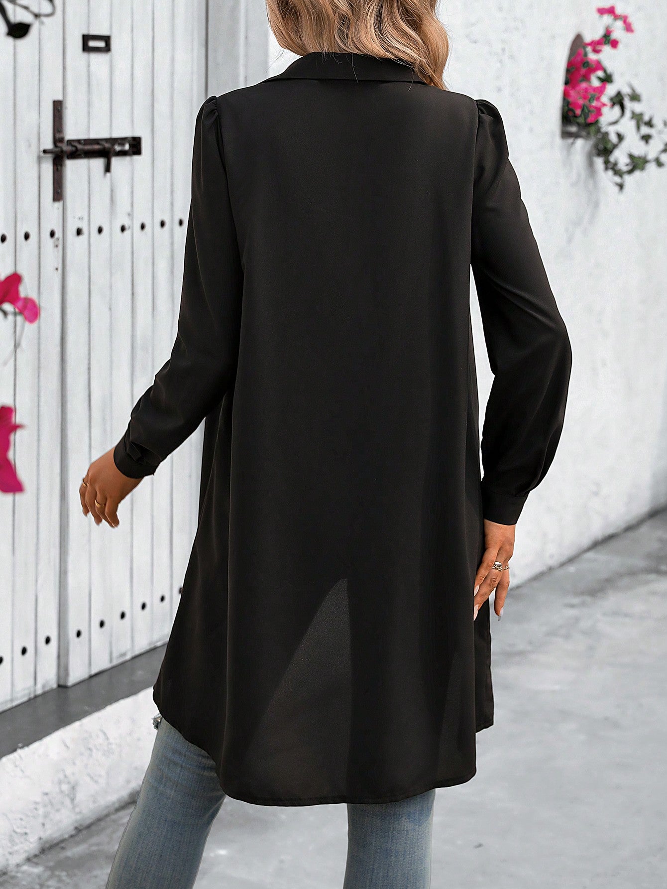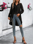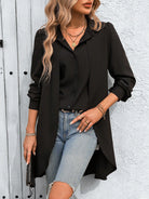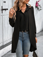 قميص كلاسي للسيدات بلون سادة 2 في 1 بأكمام طويلة