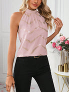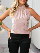 Clasi Women's Casual Commuter Colorblock Herringbone Halter Neck Blouse