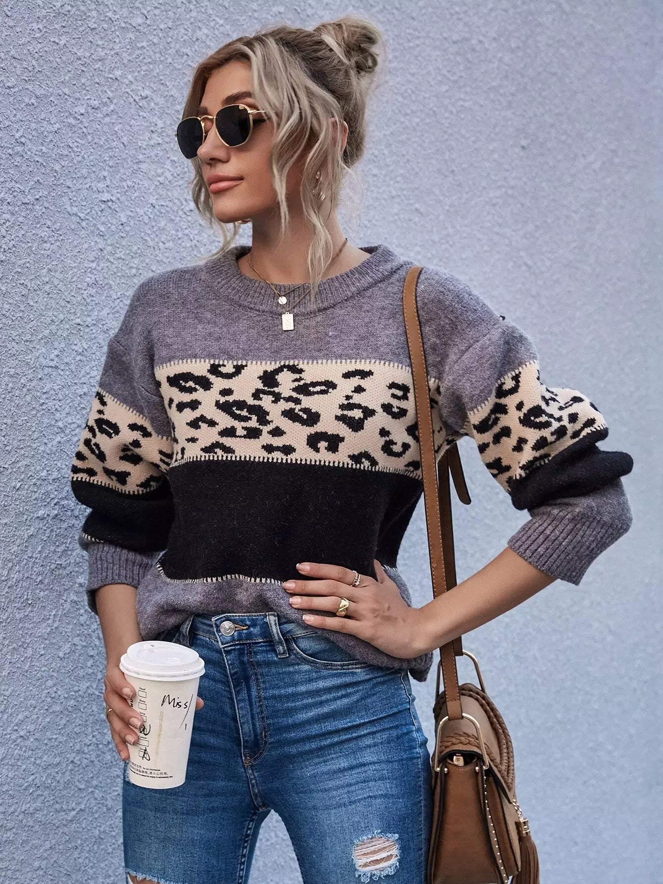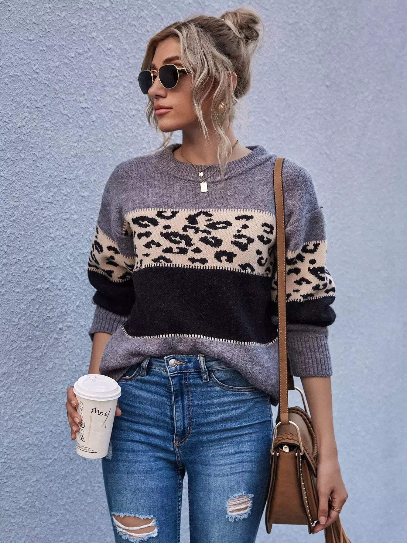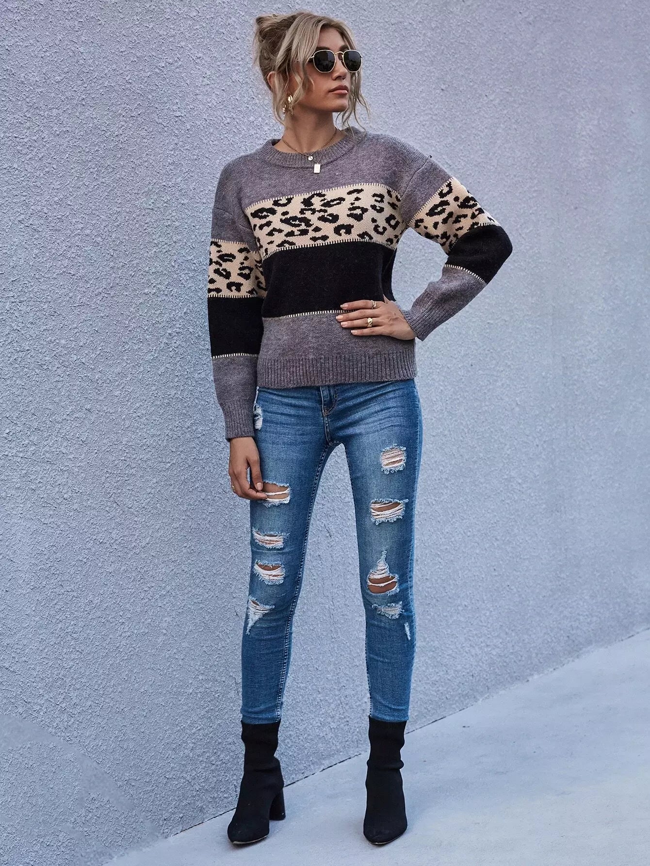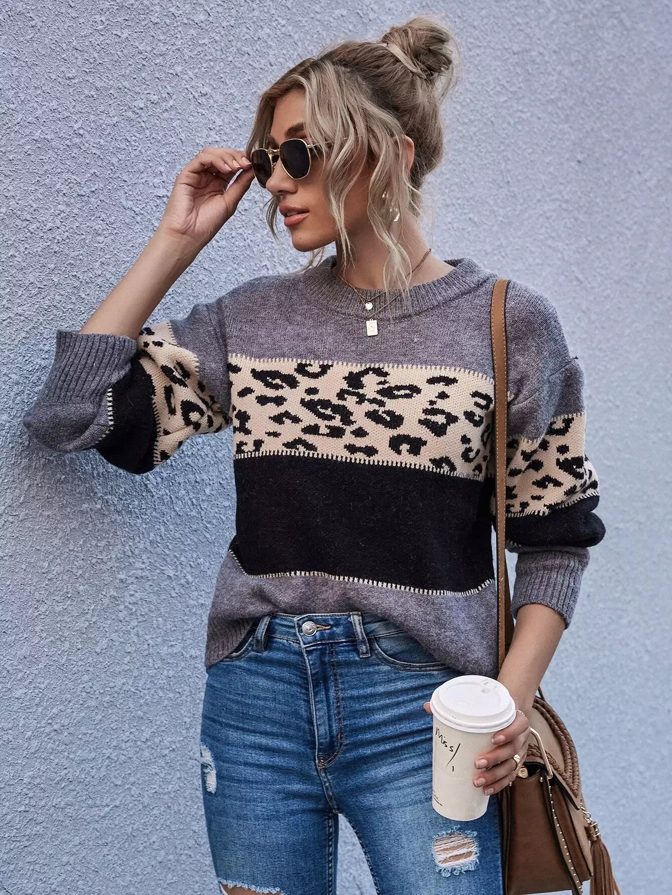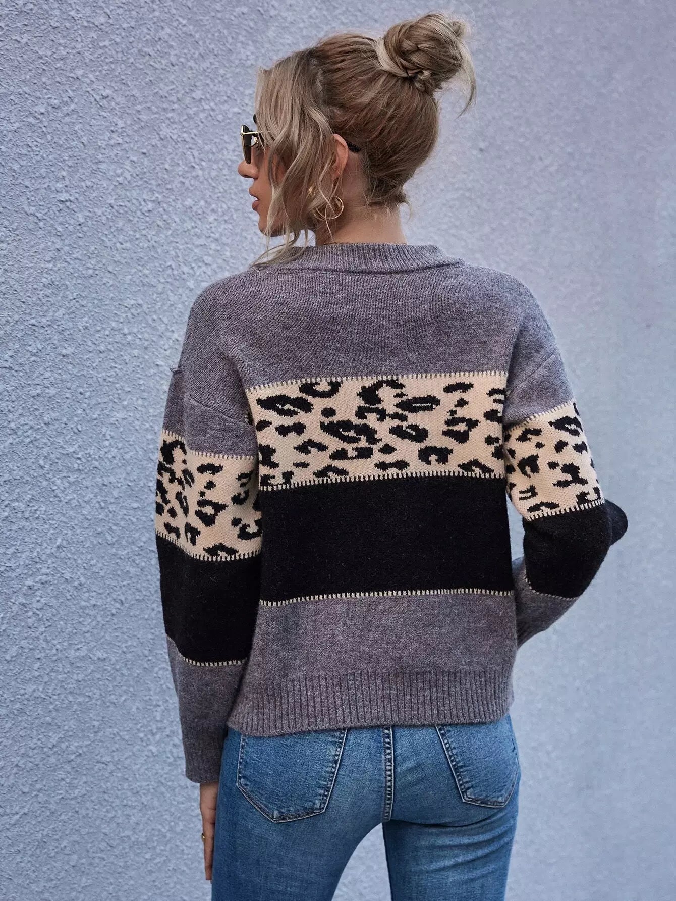 سترة منسدلة الكتفين ملونة بلوك منسدل الكتفين