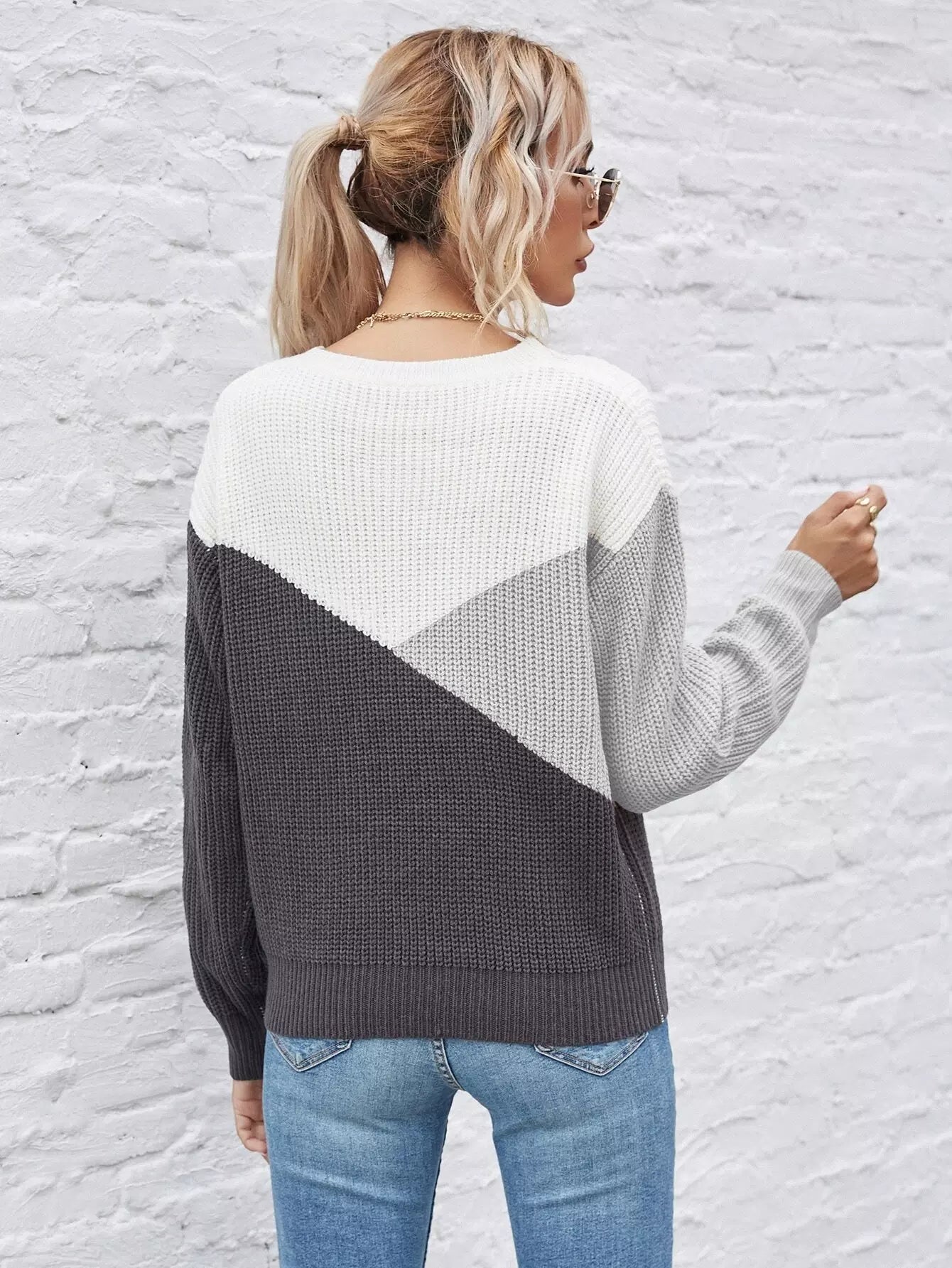 سترة منسدلة الكتفين ملونة بلوك منسدل الكتفين