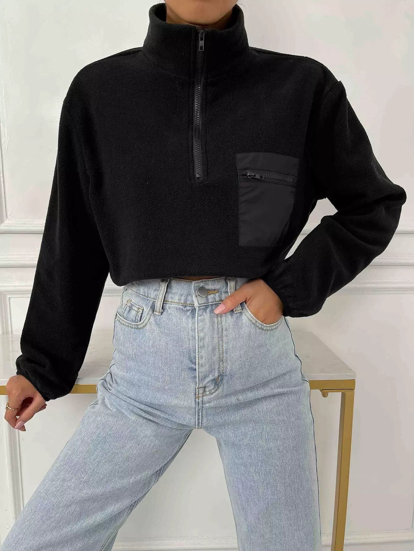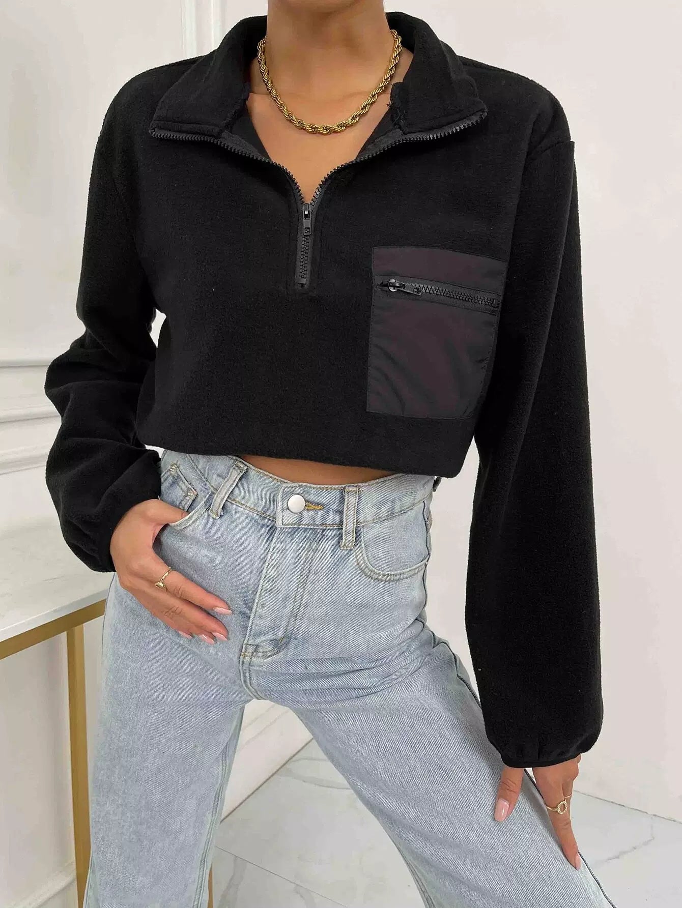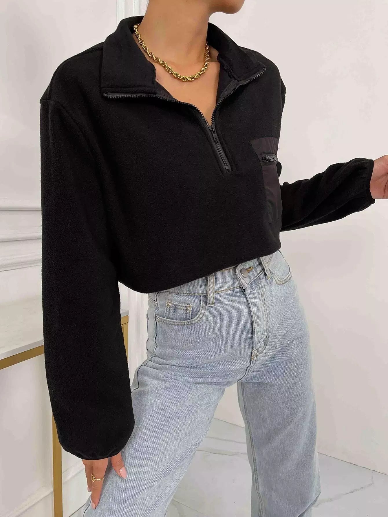 كنزة قطنية بأكمام ملونة بأكمام ملونة بفتحة منفوشة