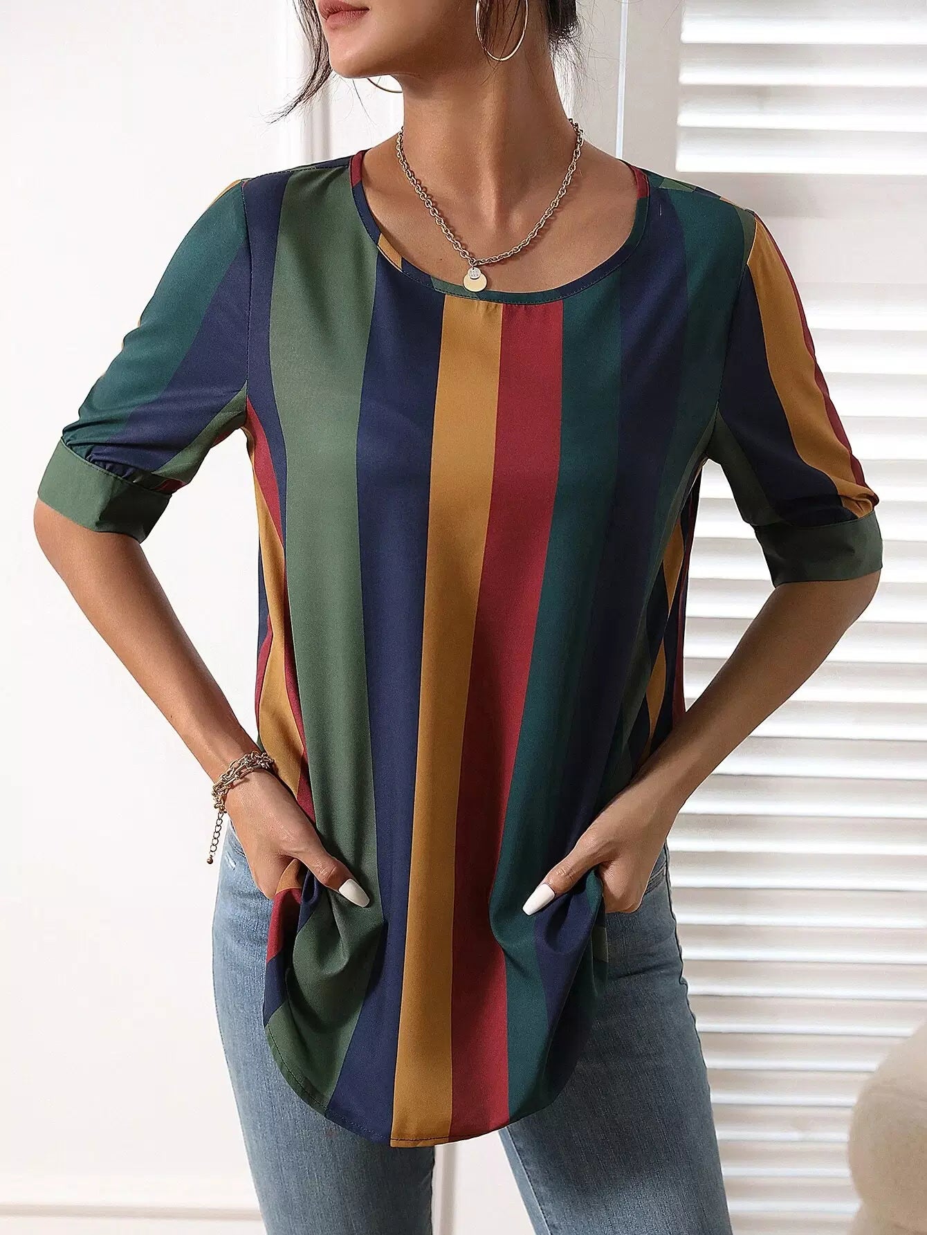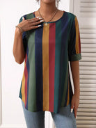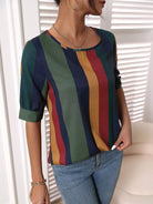 بلوزة مطبوعة مخططة بألوان متعددة