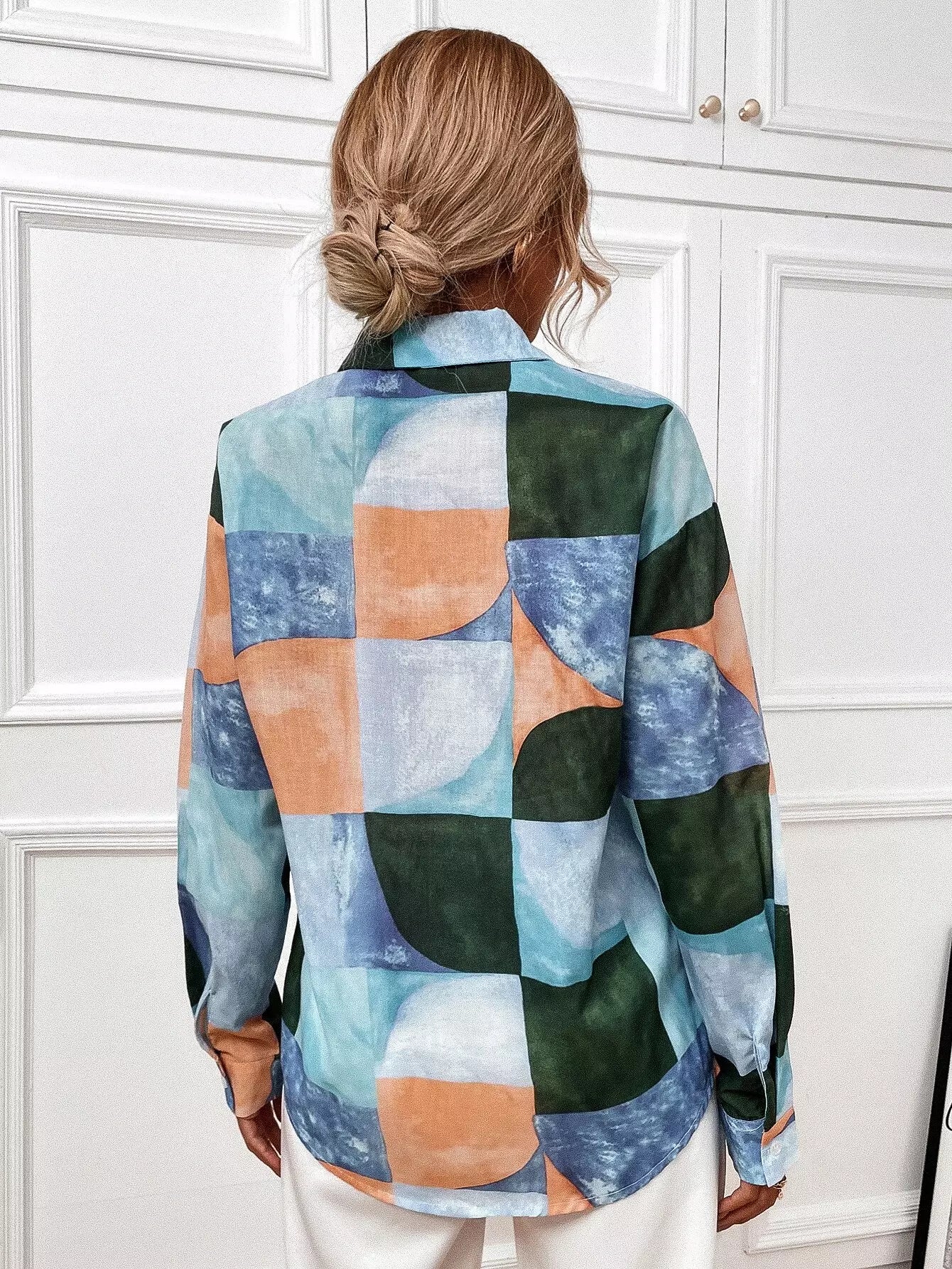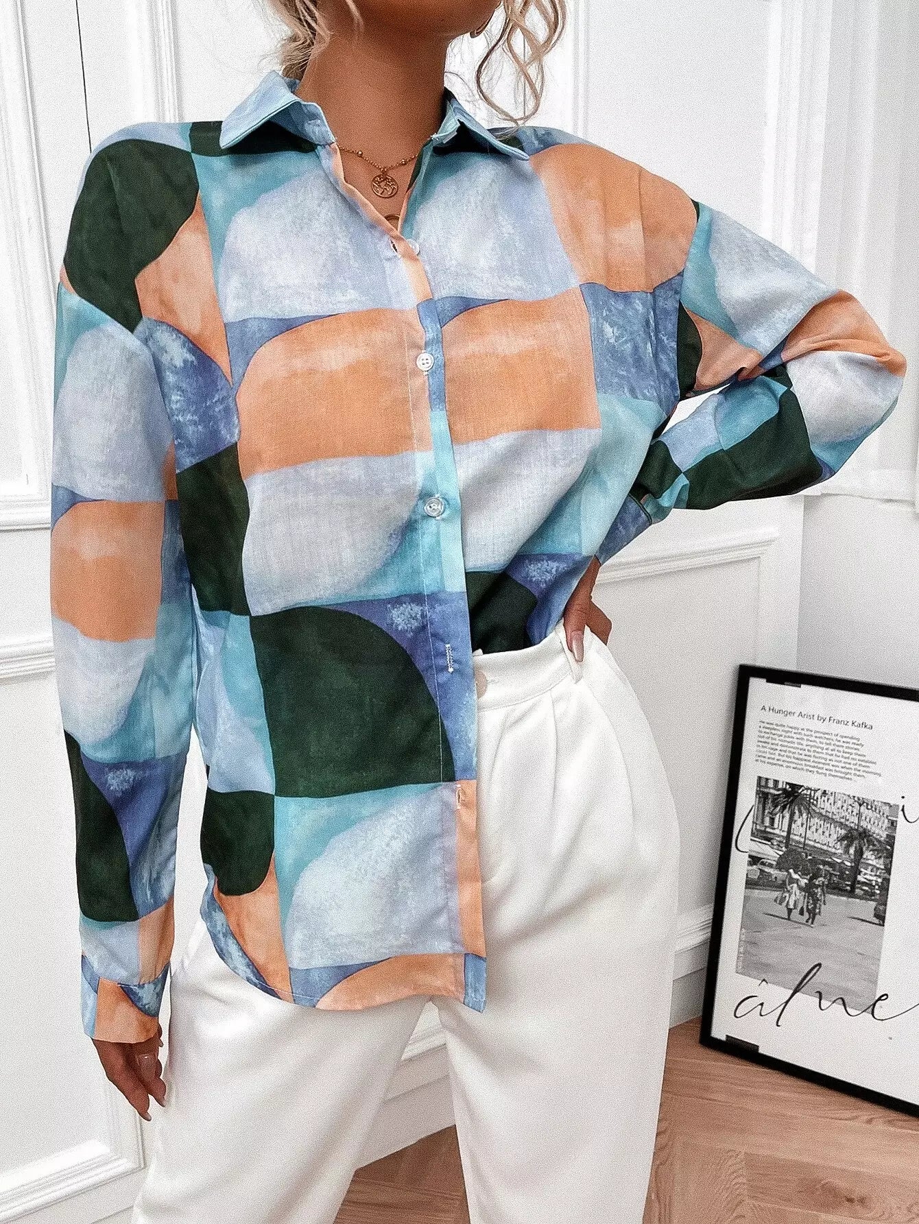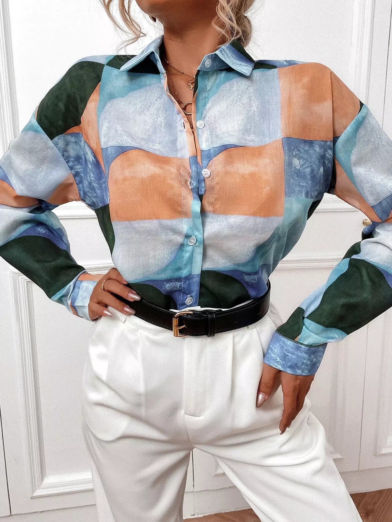 قميص بأزرار أمامية بأزرار منسدلة الكتفين ملون