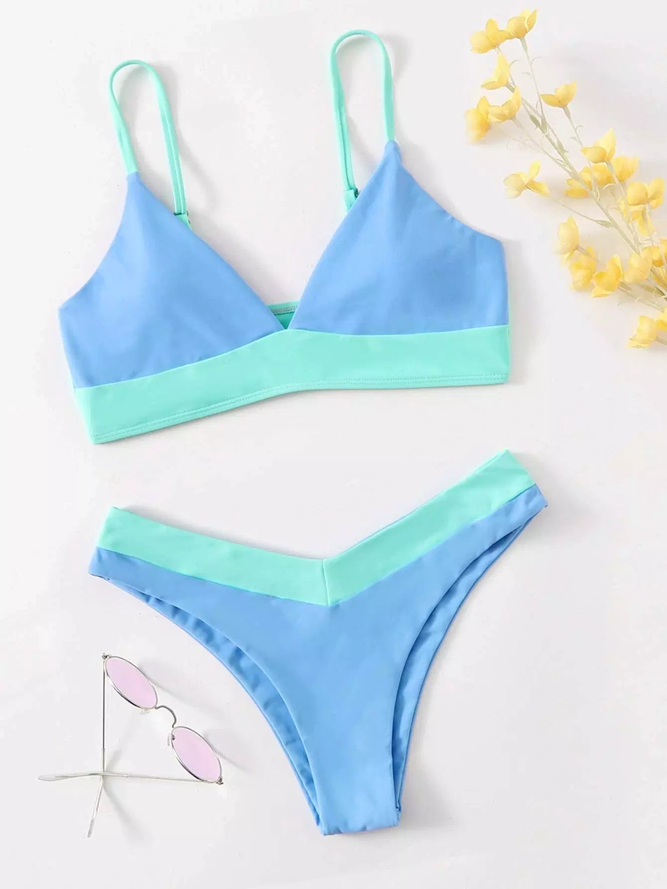 بدلة سباحة بيكيني عالي الساقين ملون