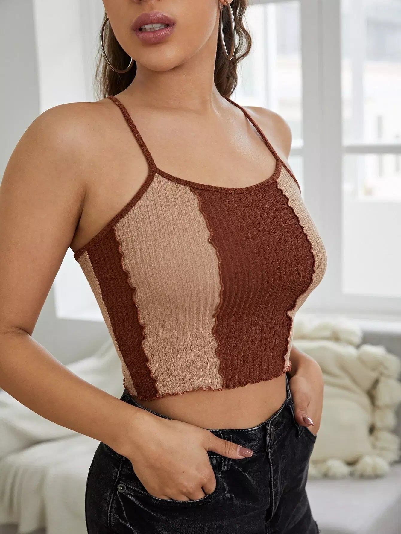 تانك بدون أكمام بحواف ملونة مزينة بالخس